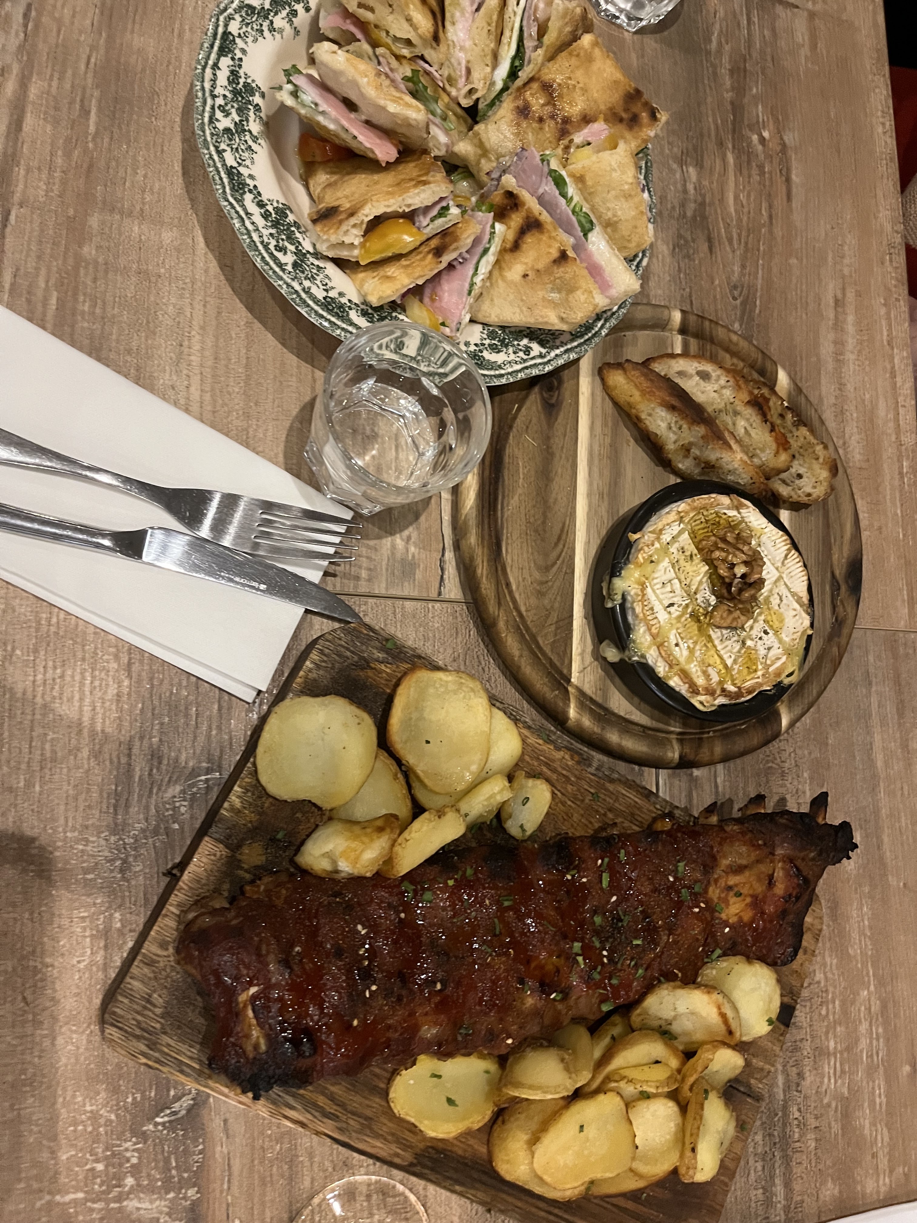 Endroit très sympa pour venir boire un verre et grignoter des petites choses en même temps. Le camembert rôti au miel, un délice! Cependant dommage pour le service qui n’était pas top, serveur pas souriant qui débarrasse la table sans nous demander si nous voulons autre chose, nous avons attendu pour un dessert que nous ne sommes jamais venu nous proposer donc nous sommes parties..