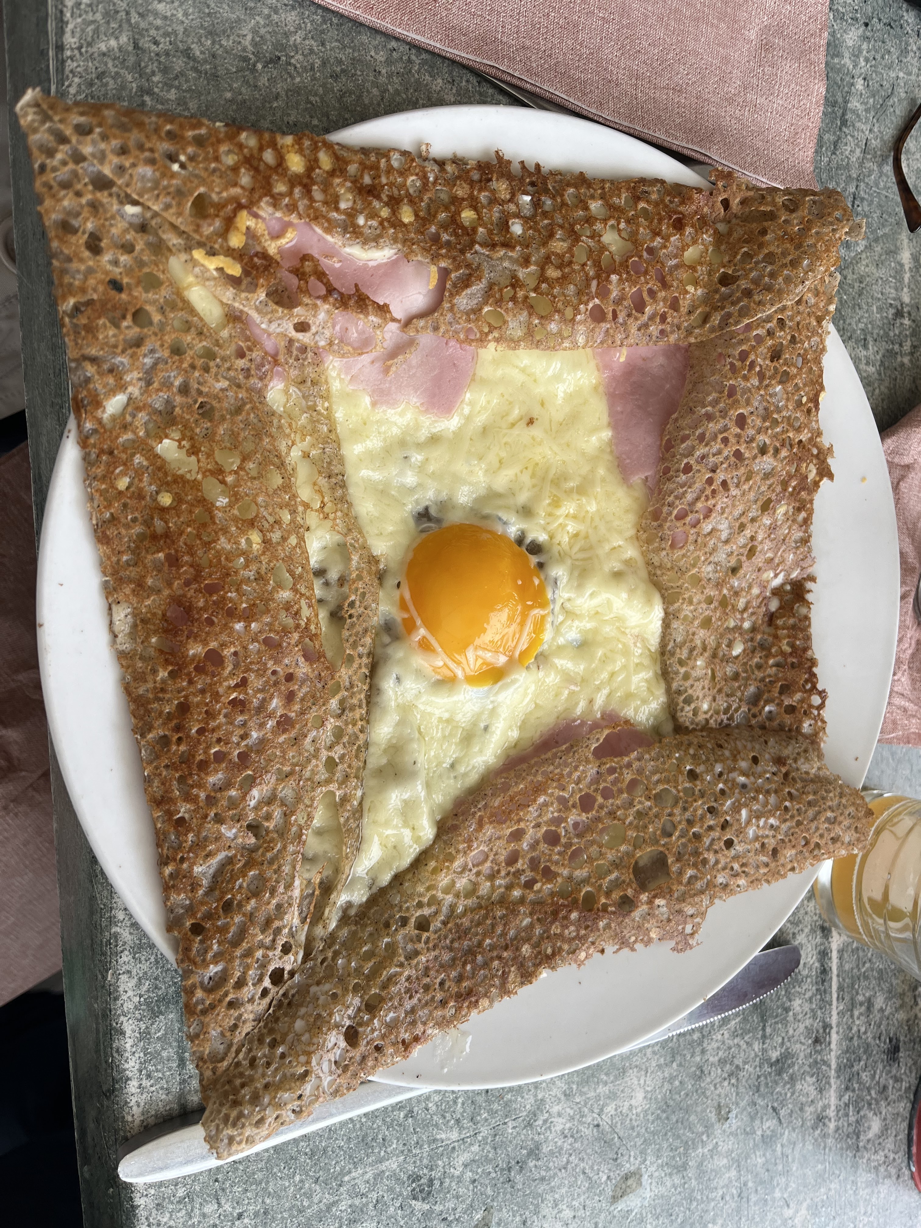 Excellentes moules suivies d’une galette complète exceptionnelle, tout ça dégusté en terrasse avec vue sur le port!