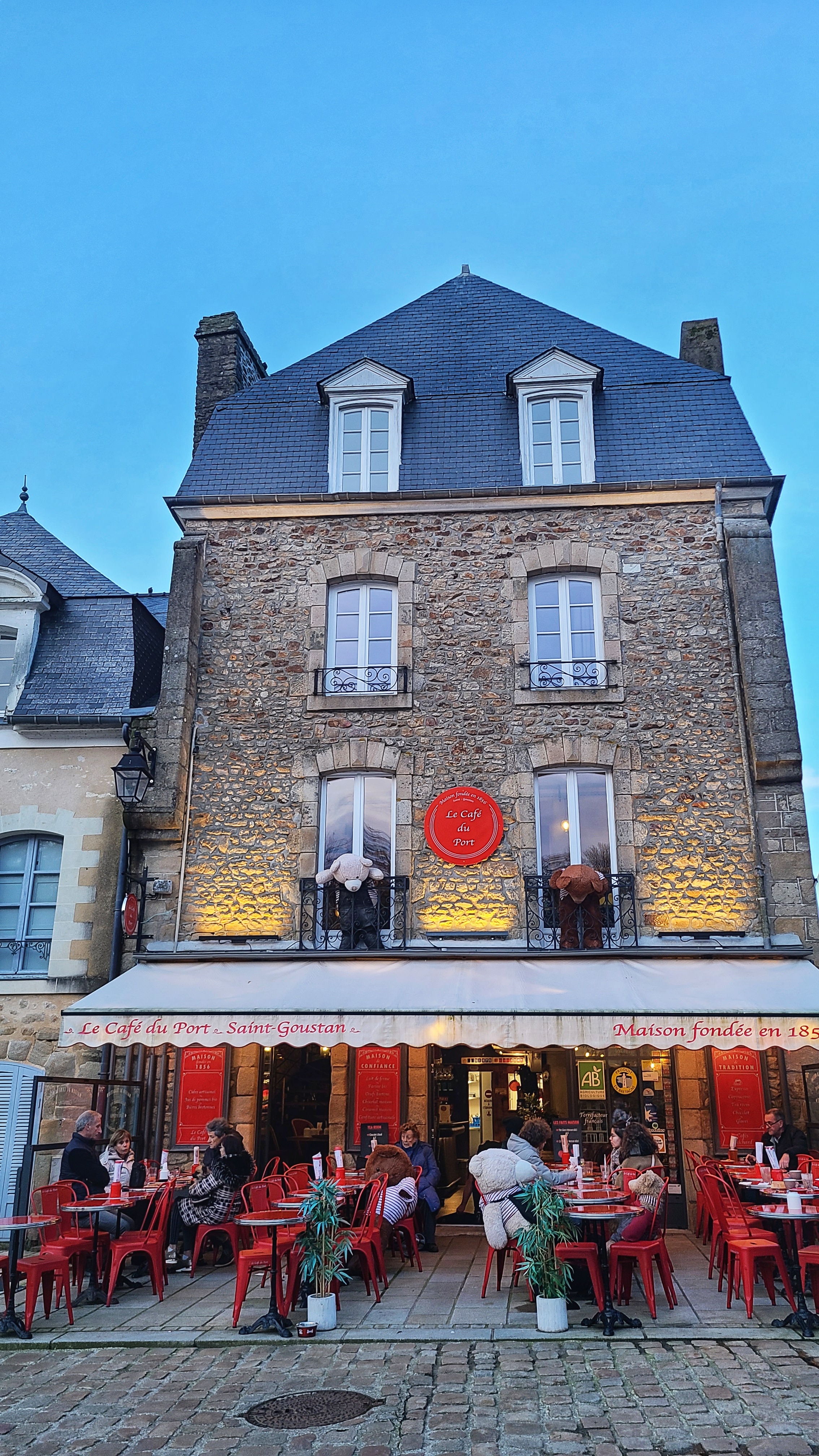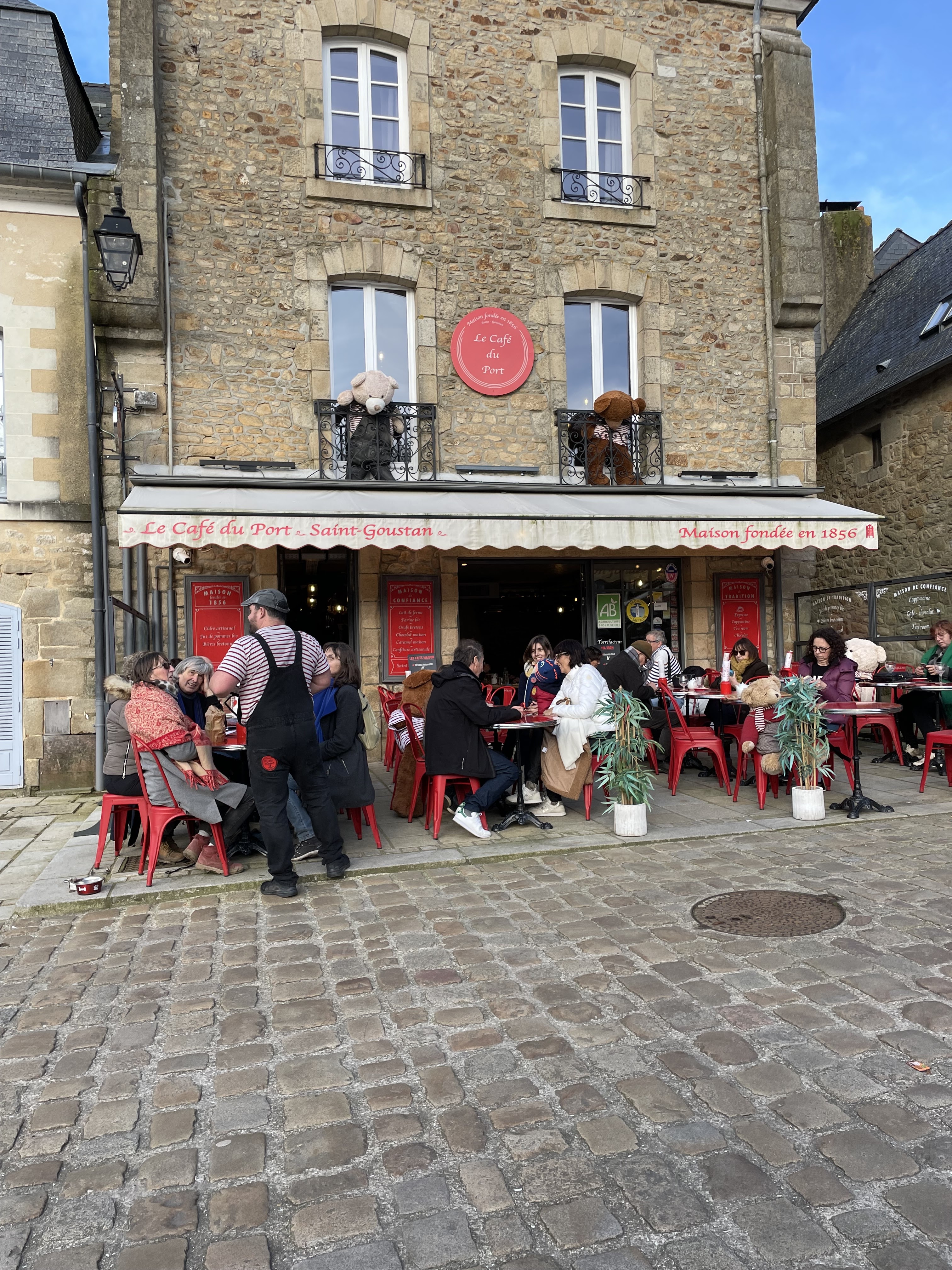 Accueilli par des nounours en terrasse c est un Super endroit niché au port de Saint Goustan à Auray Nous y sommes allés pour le café et avons craqué sur les crêpes sucrées qui sont très bonnes😋 et un super serveur avec de l humour Je recommande vivement 🥰