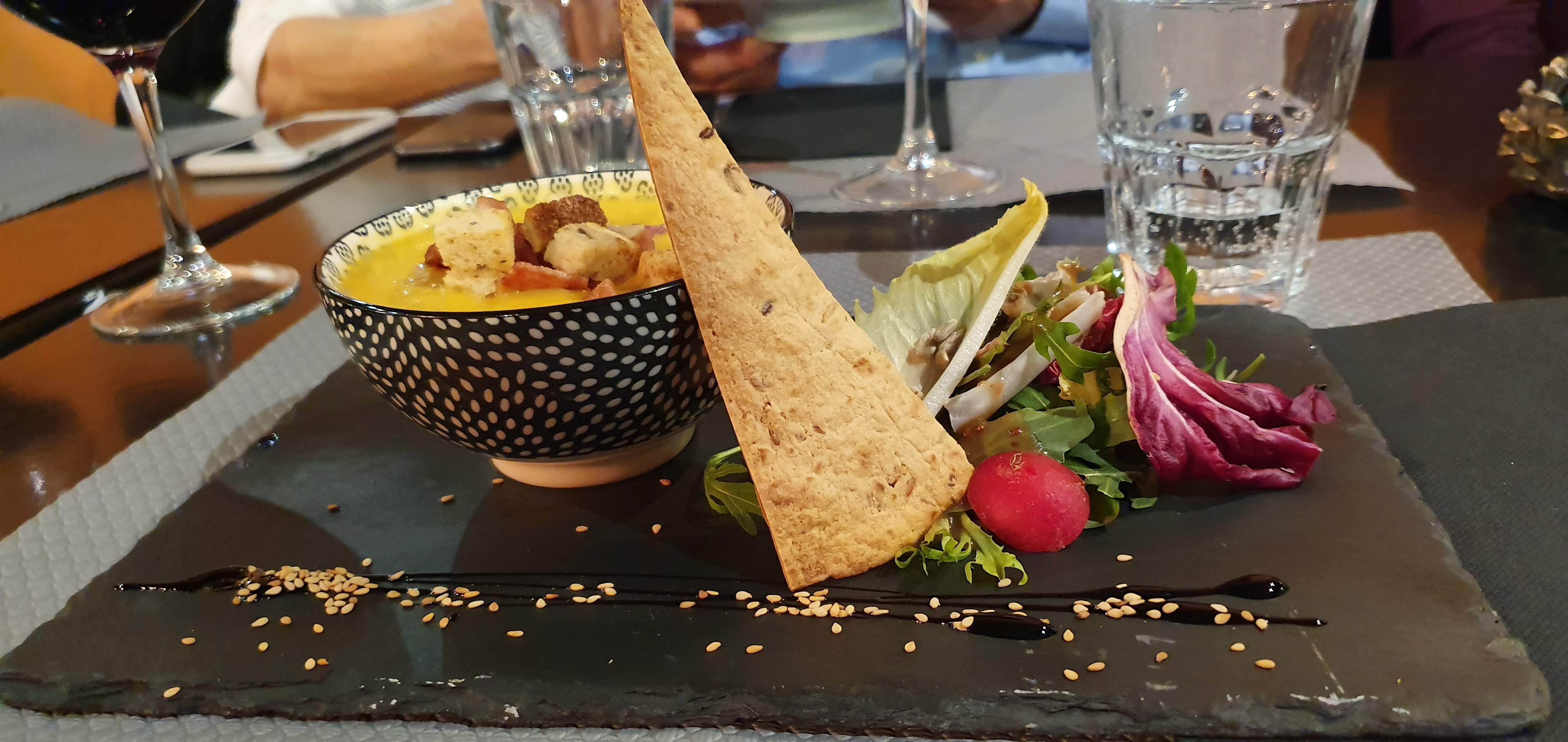 Excellente surprise, les plats étaient copieux, presque déçu de ne plus avoir eu assez de place pour un dessert après entrée+plat, vraiment très bons et surtout originaux et c'est à souligner quand vous ne trouvez ailleurs que des pizzas/poissons/pâtes depuis plusieurs jours. L'attente peut sembler un peu longue, mais en même temps on n'est pas sur des produits surgelés ou préparés d'avance donc c'est tout naturel. Le personnel est très sympathique. Les prix sont corrects au vu de la qualité des plats proposés. Le cadre est agréable et on ne mange pas les uns sur les autres, très appréciable également !