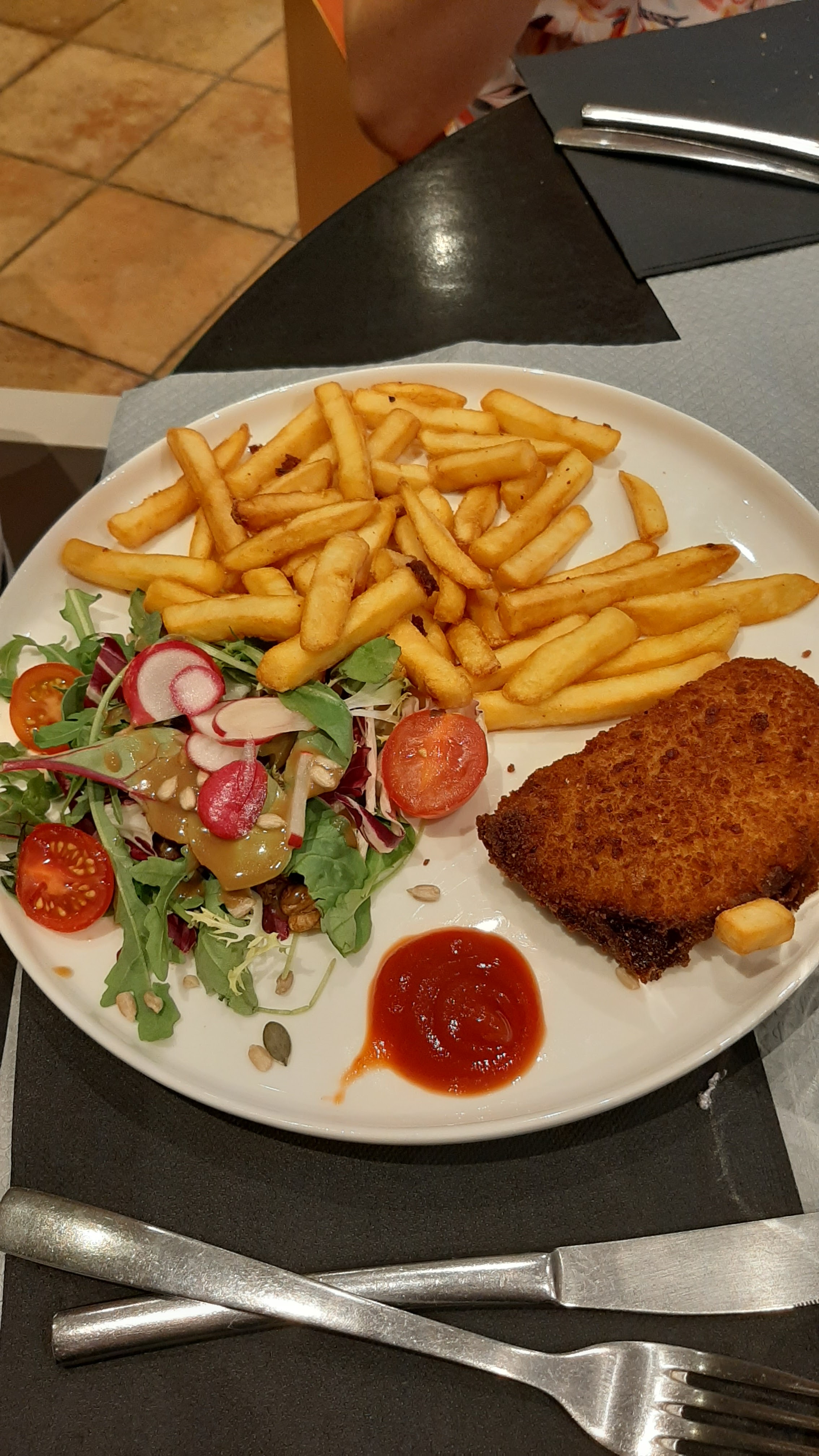 Je m'attendais à un piège à touristes, mais ce ne fut pas du tout le cas ! Le poulet paprika était très bon, et bien accompagné de frites maison, d'un croustillant de parmesan et d'une sauce aux champignons ! Les enfants ont bien mangé également (chaise enfant disponible). On a aussi testé les moules marinières, excellentes ! Le service était efficace et le personnel très agréable ! On garde en tête pour les prochaines fois ;-)
