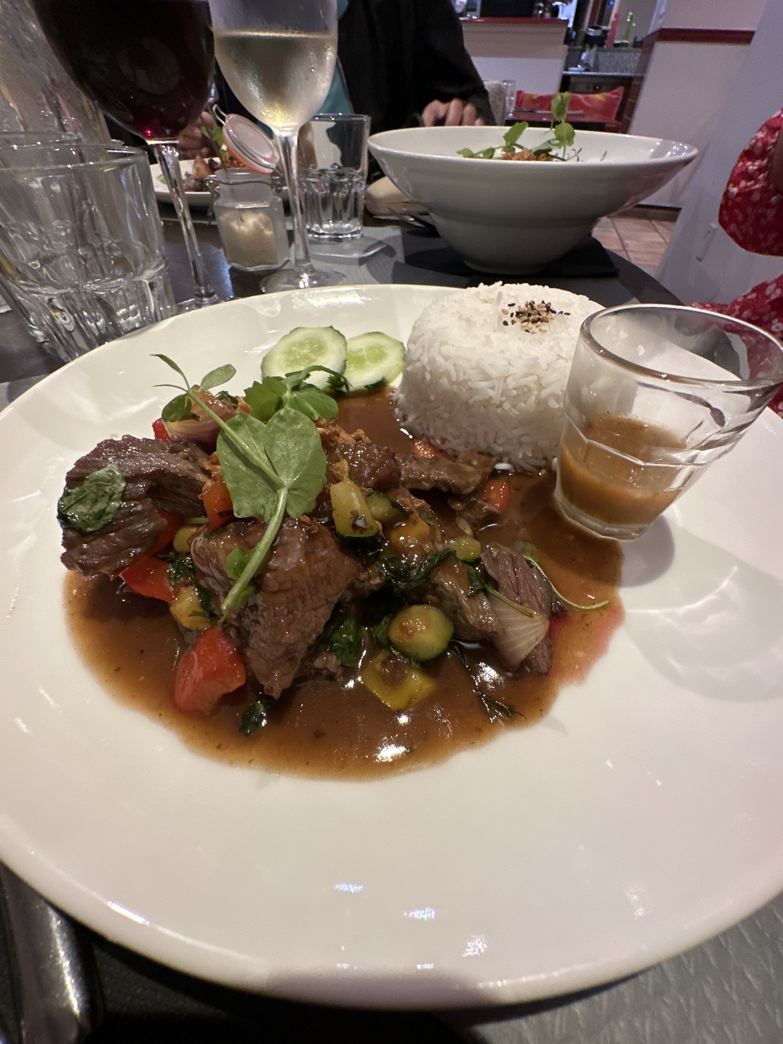 Très bon repas, Pour moi ce fut bavette façon thaïlandaise, super bon. Tout le monde a été satisfait de leurs repas, grands et petits. Au niveau tarif, c’est très raisonnable. Je le conseil vraiment.