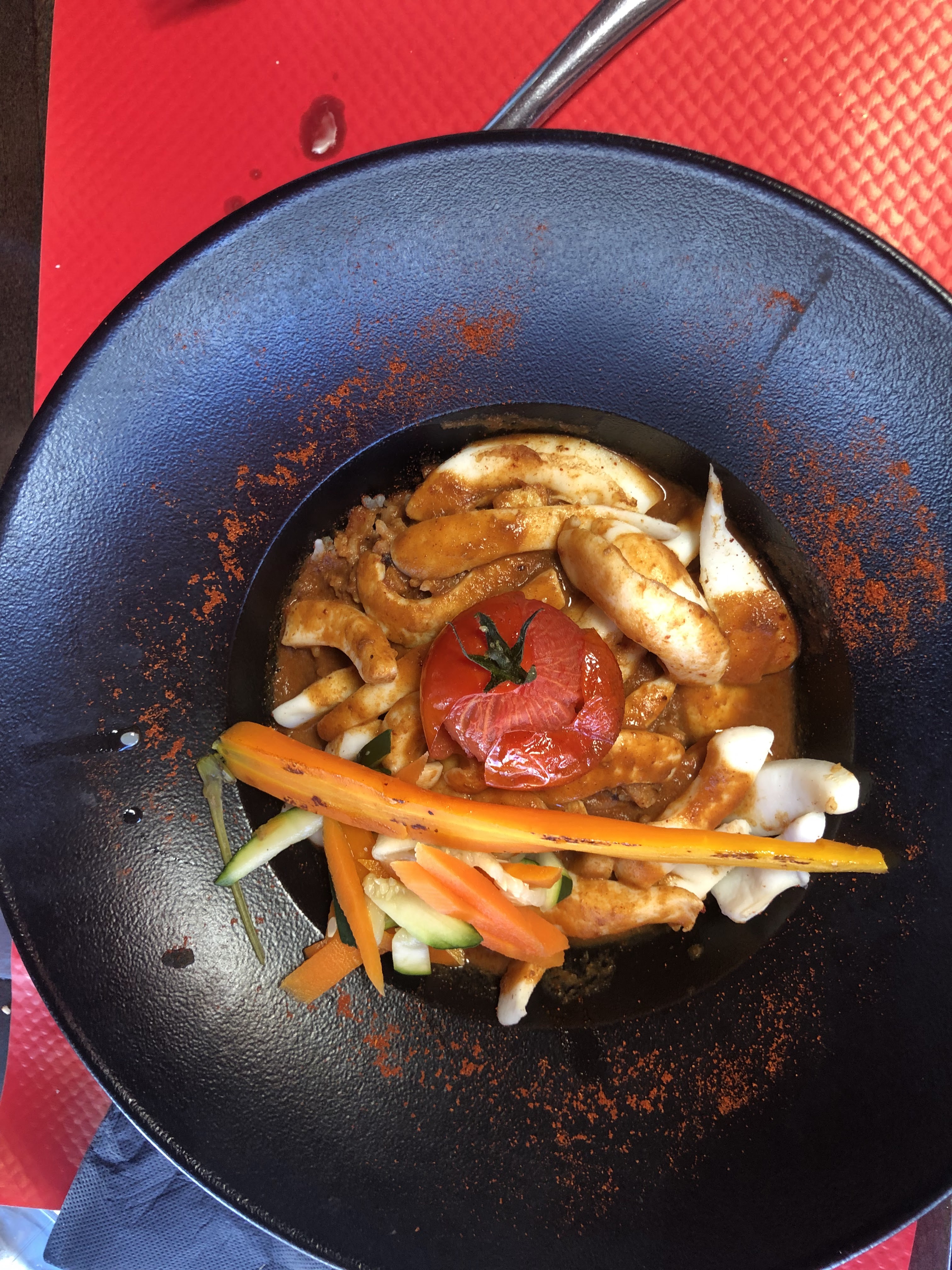 Un accueil agréable ! Nous avons prit en entrée des fritures, très très bonnes ! Je recommande ce plat ! Puis en plat... des moules frites chorizo, crème, gorgonzola et curry ! Attention pour le curry, il s'agit de curry vert ! Dommage ce n'était pas indiqué sur la carte au moment de commander ! Les moules sont accompagnées de frites. Les quantités sont largement suffisantes. Accepté les chiens au sein de l'établissement !