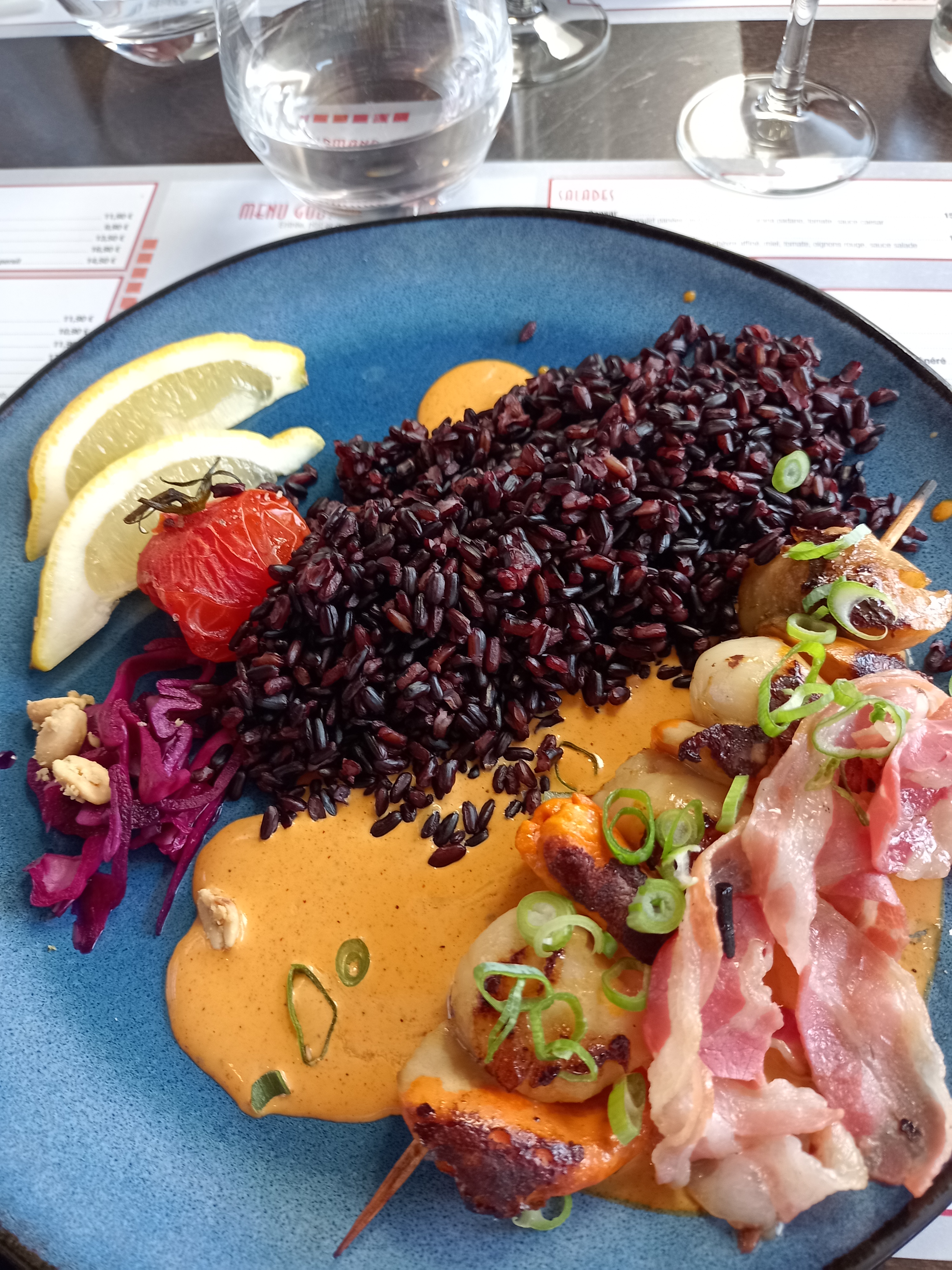 Très décevant. Le bar est sec. Les langoustines pas assez cuites du tout. Les Saint jacques insipides et le riz rouge très sec également...... pour une addition salée Seul le service est agréable. Je ne recommande pas du tout.