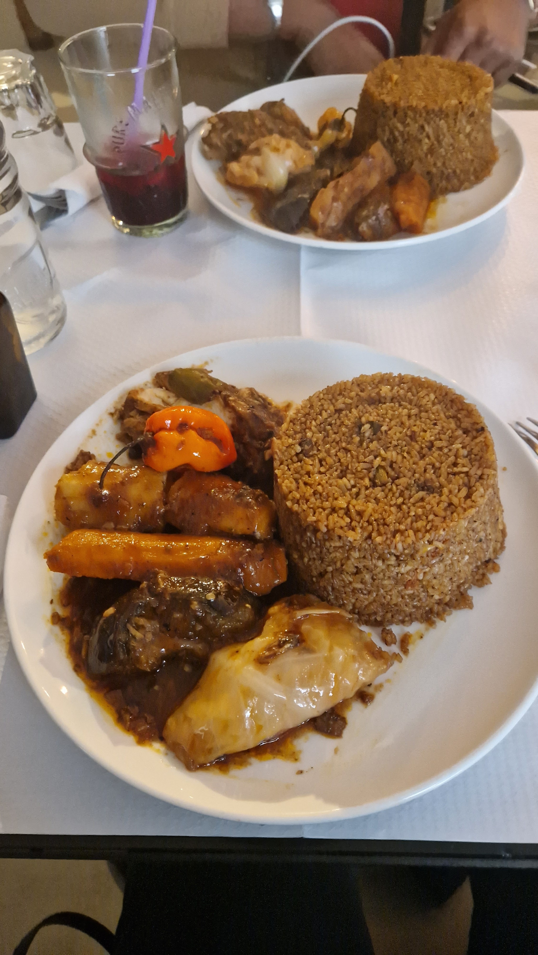 J’ai été acheter du djibi dans ce restaurant, j’ai reçu 3 morceaux de viande, tout de graisse, déjà à 17h55 je suis arrivé, elle étaient à 2 au comptoir. Ni accueillante ni souriante, je passe commande, elle sont entrain de parler entre elle. En mangeant j’ai quand même manger 2 bout et je me rends compte que c’est pas possible: je tourte au restaurant en leur expliquant. Elle ne me laisse pas parler, soit disant qu’ils ont été acheter la viande au marché e que c’était comme, je pense que vous pouvez choisir vos morceaux aux marchés et choisir des morceaux de qualité, je suis parti et suis revenu avec l’assiette de garnitures en leur disant que je leurs offrais les 15€. J’ai voulu prendre une photo pour laisser une note, et la ils sont arrivés à 4 dont un monsieur qui m’a pris par le Cole et la serveuse avec un couteau dans la main me menaçant, me bousculant, jusqu’à faire tomber mon téléphone en me disant que je me croyais en Afrique. Bah non je suis en France et j’ai le droit de laisser une note: J’habite au bout de la rue, et je voulais venir manger avec des amis depuis longtemps. Et bah quel surprise. Des sauvages et aucun sens du service de la restaurant, elle hurlais et guelais comme un chien. Je ne vous recommande pas cet endroit