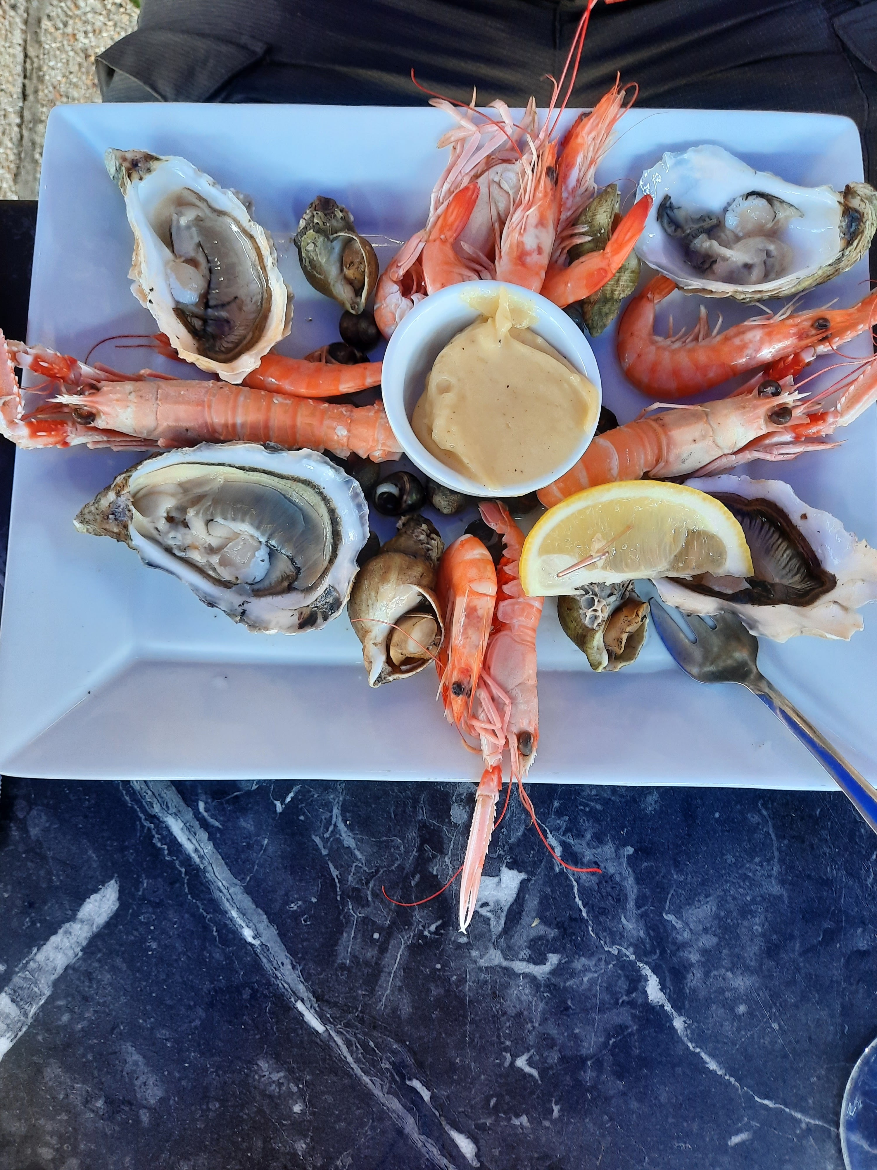 Cadre sympa, un peu cher l'assiette de fruits de mer mais qualité correcte, ambiance bruyante ce soir là.