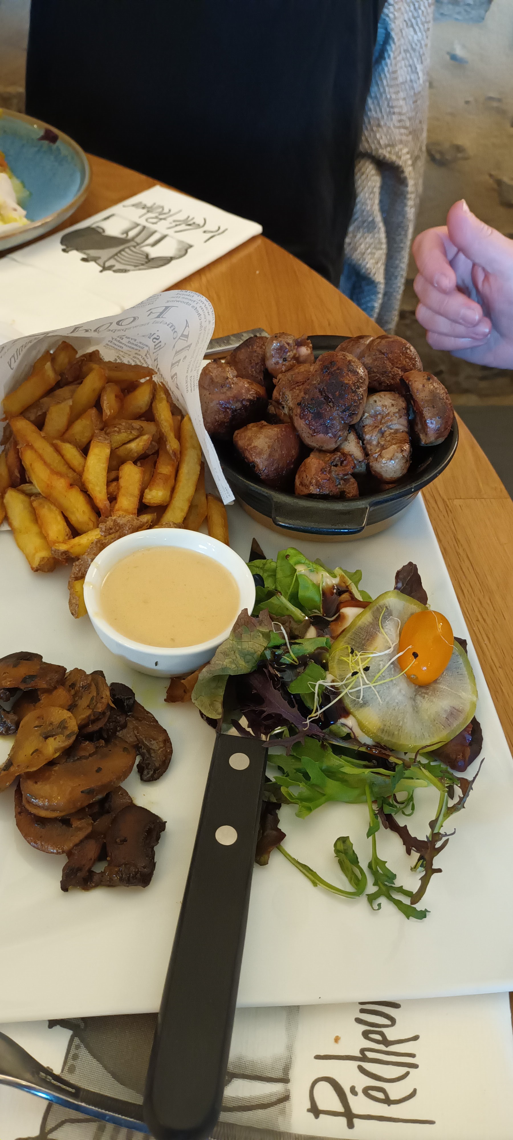 Une visite pendant la fête de la mer, nous sommes arrivés pendant le feu, mais l’équipe a su être disponible, super ! Côté assiette une moules frites avec une sauce crème très bien cuisinée (pas une crème fraîche simplement posée sur les moules) et le menu enfant qui ressemble à de la cuisine ! Vous pouvez y aller 👍