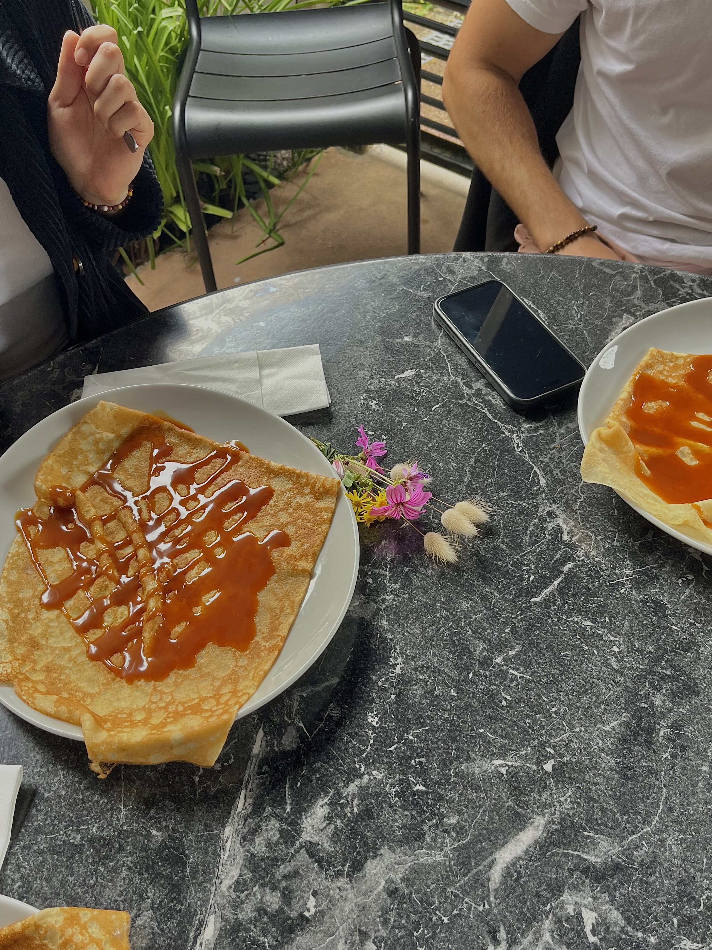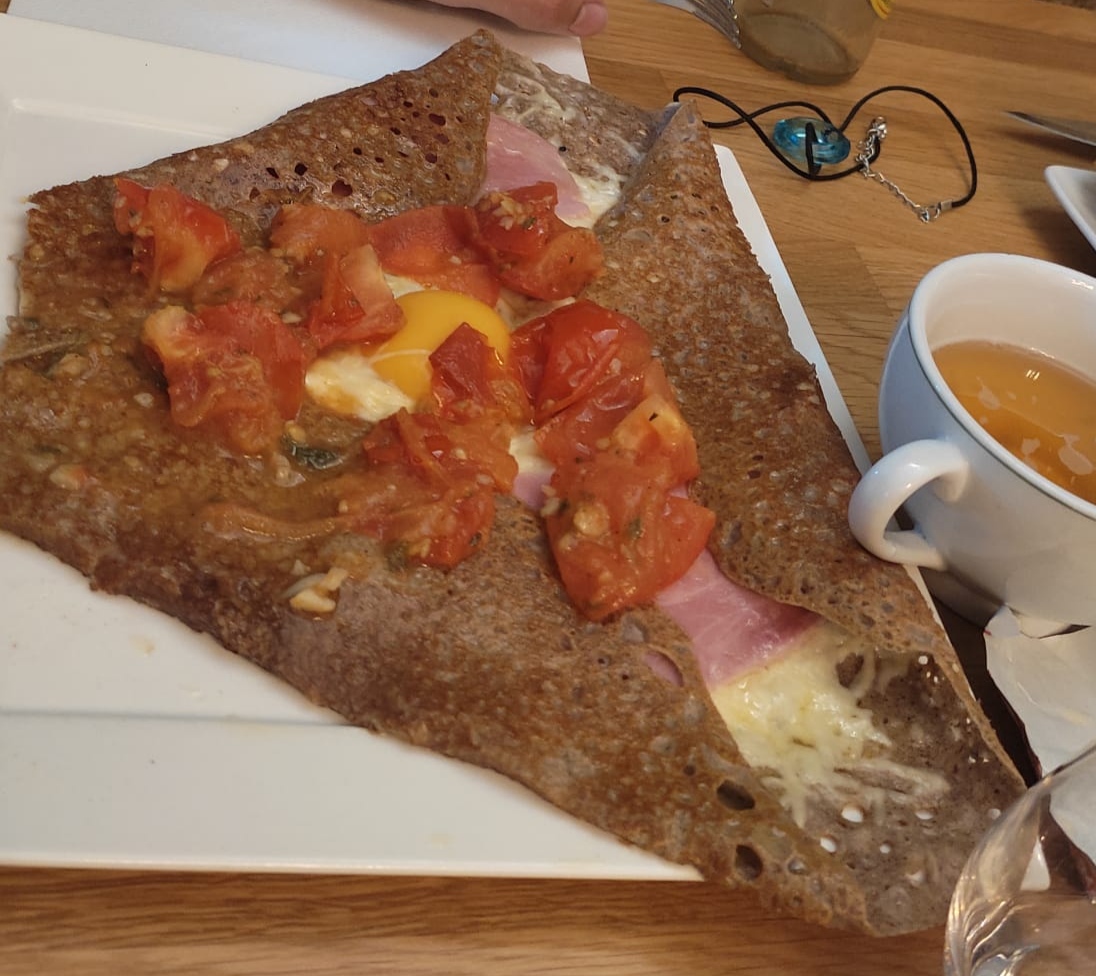 Détour obligé à chaque vacances 😀.Déjeuner en terrasse , p'tite friture avec apero(en espérant qu'elle soit de retour...bientôt) 🤔😋,bonne cuisine,galettes généreuses.