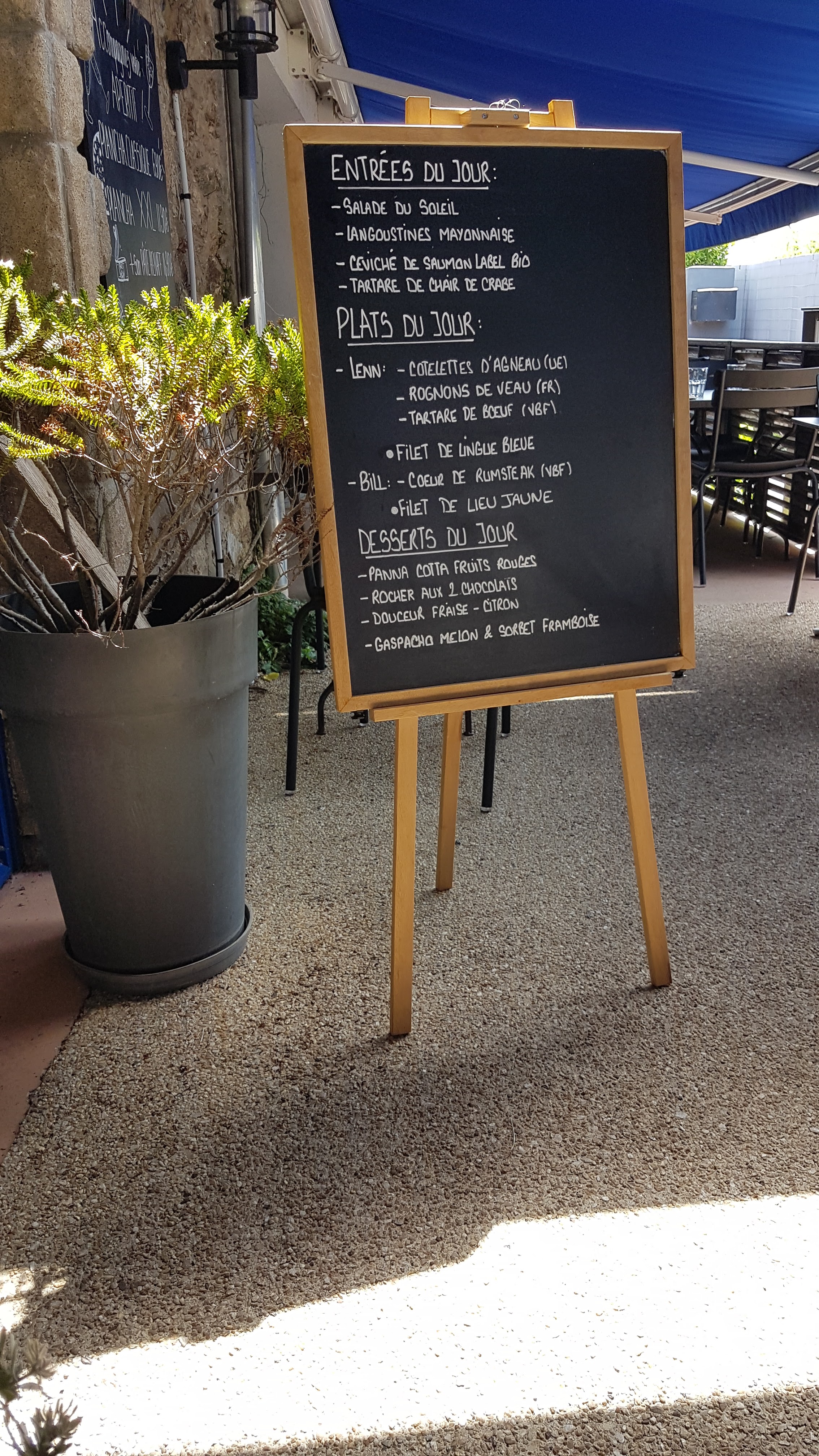 Agréable Bistrot avec terrasse, un plaisir par une chaude soirée d'été. Les légumes en accompagnement du poisson du jour étaient tout simplement délicieux. C'est rare d'avoir des légumes et Purées de légumes cuisinés avec autant de goût. Vraiment le point fort du plat. Belle assiette de fruits de mer. Excellent kir breton. Verre de vin blanc exquis pour accompagner notre plat. Point intéressant pour les familles, les toilettes disposent d'une table à langer.