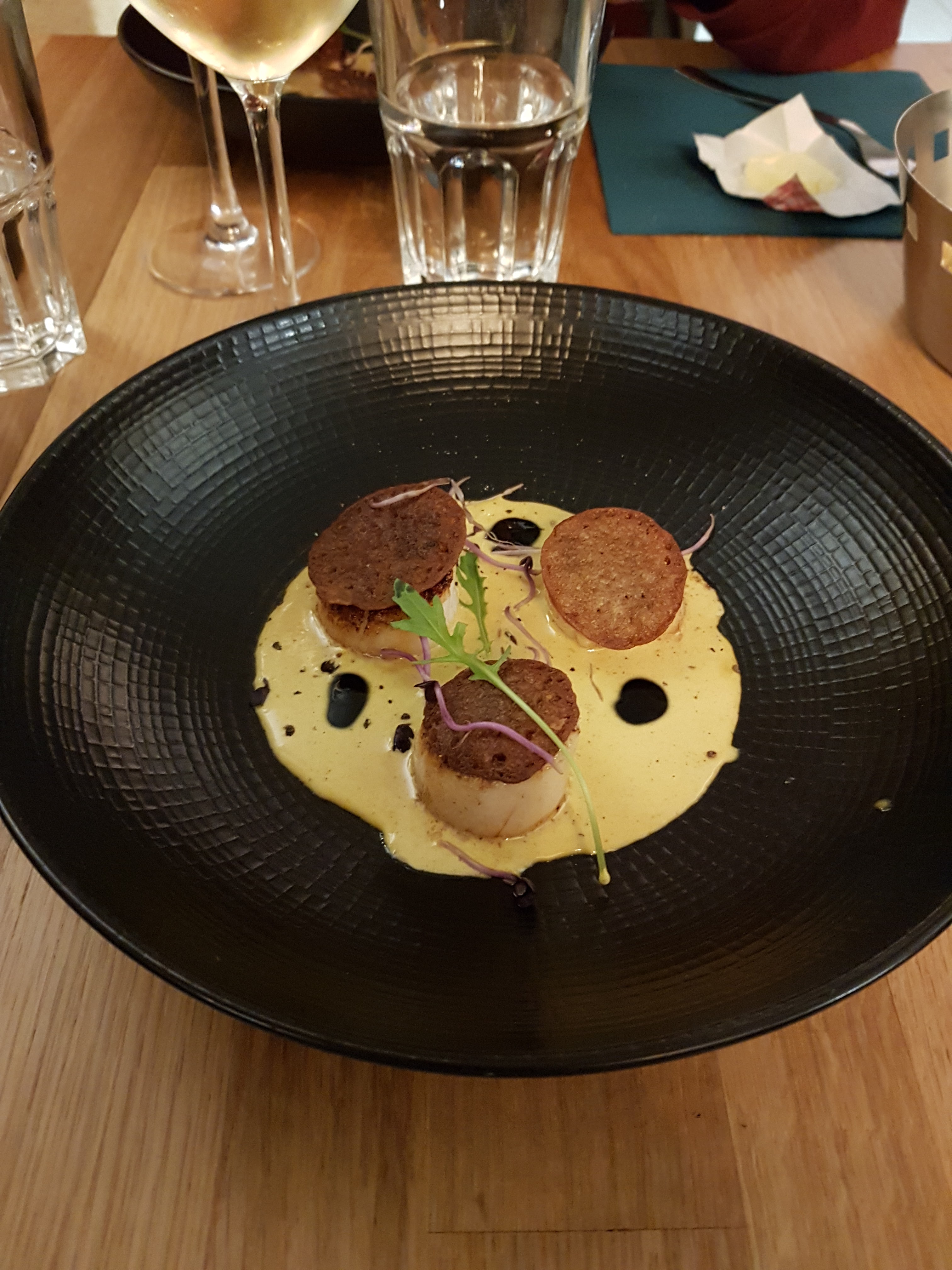 L'entrée du jour était juste parfaite (pas forcément l'avis de mon cardiologue) et le reste de plats très bons - En revanche @leresto, je vous laisse mon cale table bancale imprimé en 3D contre un cognac la prochaine fois qu'on passe (table 5 ;-) )