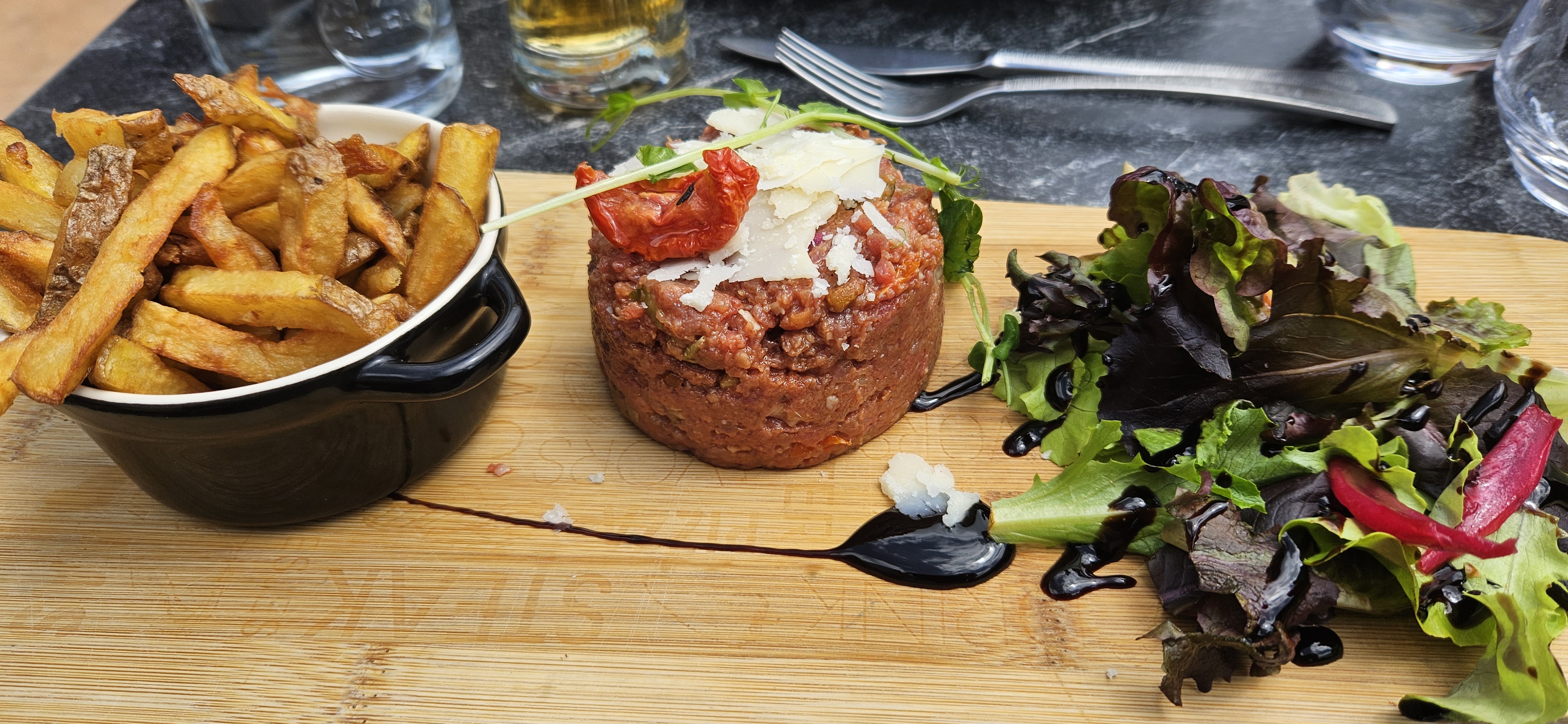 Encore une fois excellent.. Duo de saumon délicieux. Tartare de boeuf fondant et extra... Personnel extrêmement sympathique. Petit clin d œil au patron et a son fils pour le morjito. ... Ne changez rien c est parfait