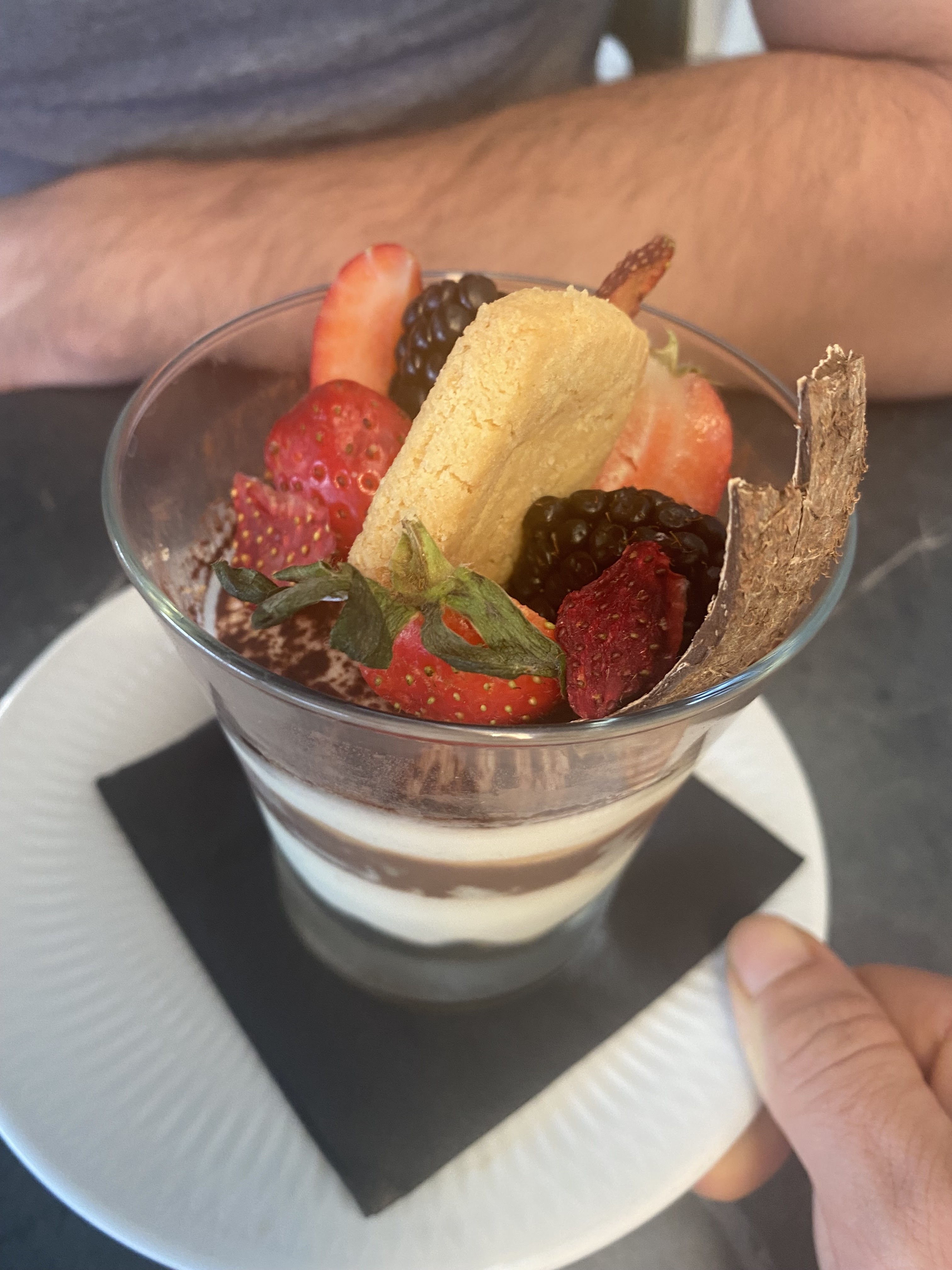En terrasse, nous avons beaucoup apprécié le service et les plats. Le tartare de boeuf très bien assaisonné, les frites parfaites, moelleuses et croustillantes sans être grasses. Le poisson cuit parfaitement, pavé de maigre accompagné de petits légumes. Le dessert vaut le détour, car sans être trop sucré, les produits sont mis en avant. Un plaisir pour les papilles. Seul point à améliorer : la température du vin blanc qui aurait pu être servi plus frais. Nous avons d'ailleurs demandé un seau à glaçons, qui nous a été immédiatement été porté. Nous reviendrons.