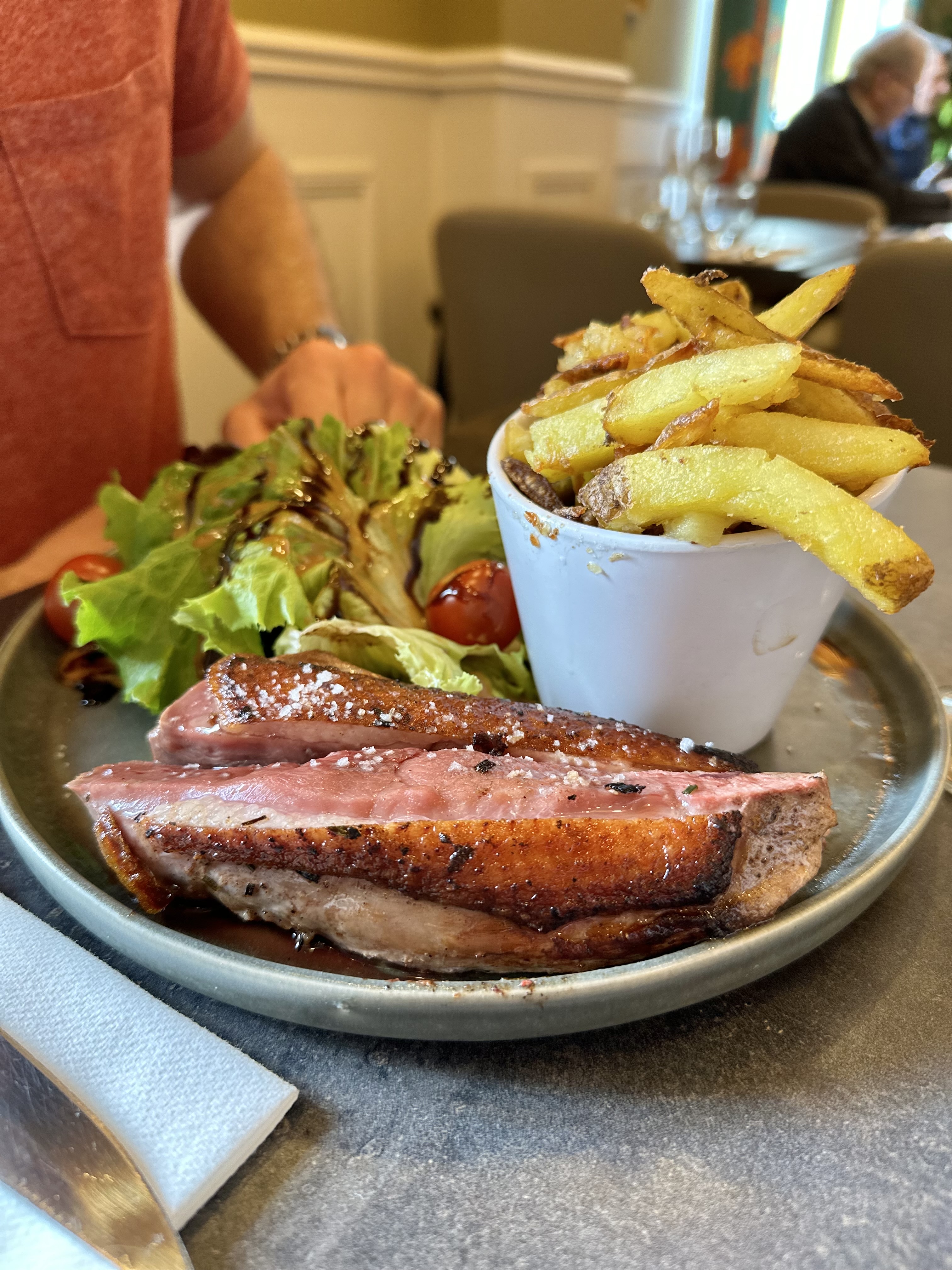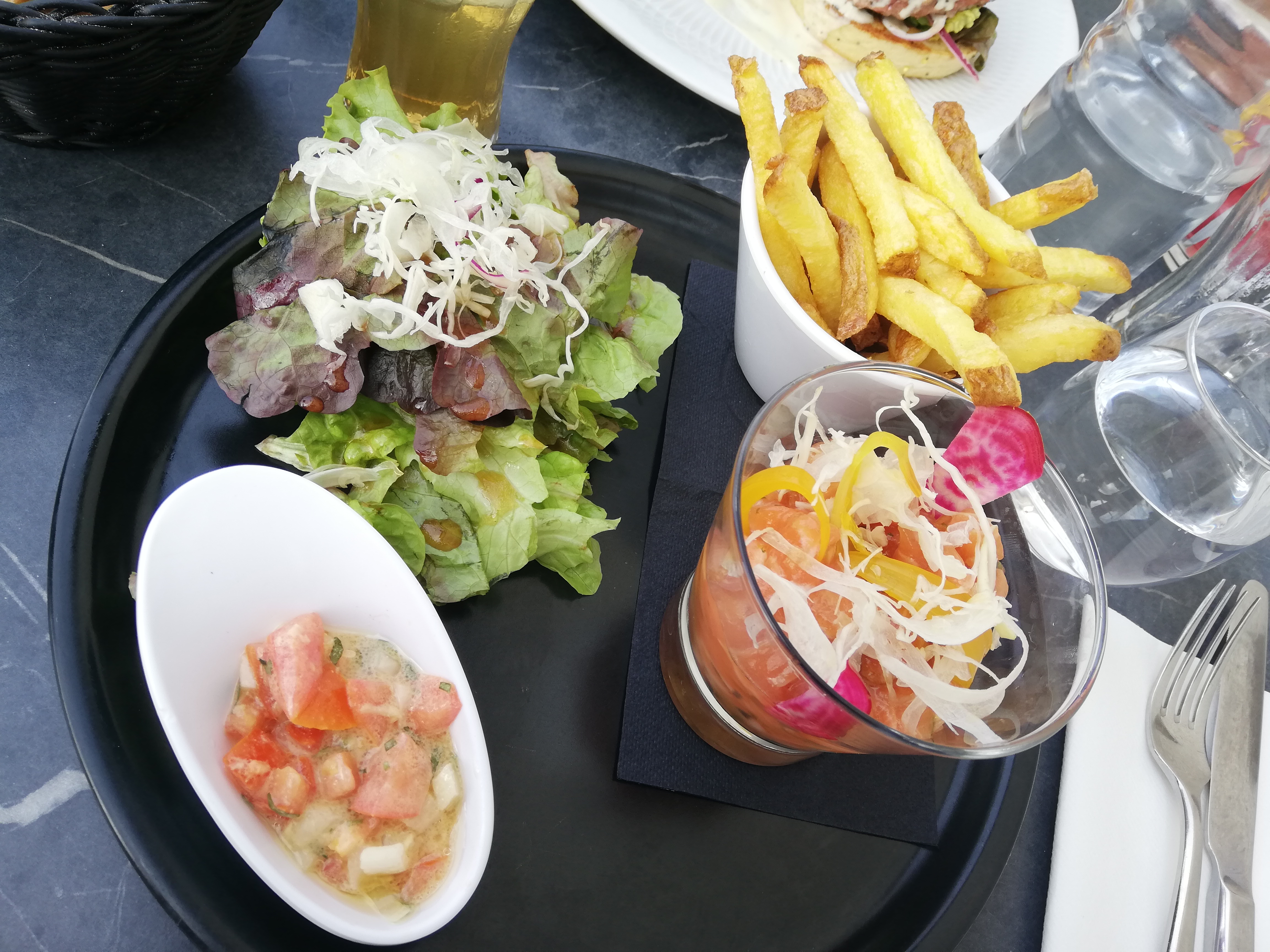 Lieu très sympa, belle terrasse arrière. Patronne et personnel efficaces. Par contre, plus de burgers comme affiché sur la pancarte à l'entrée. C'est dommage car tous les autres plats (très bons par ailleurs pour ceux que nous avons pris) sont tous entre 19 et 30 € (et des salades rituelles à 17) Ce restau étant le seul du coin, pas vraiment le choix d'aller ailleurs pour un repas moins cher.