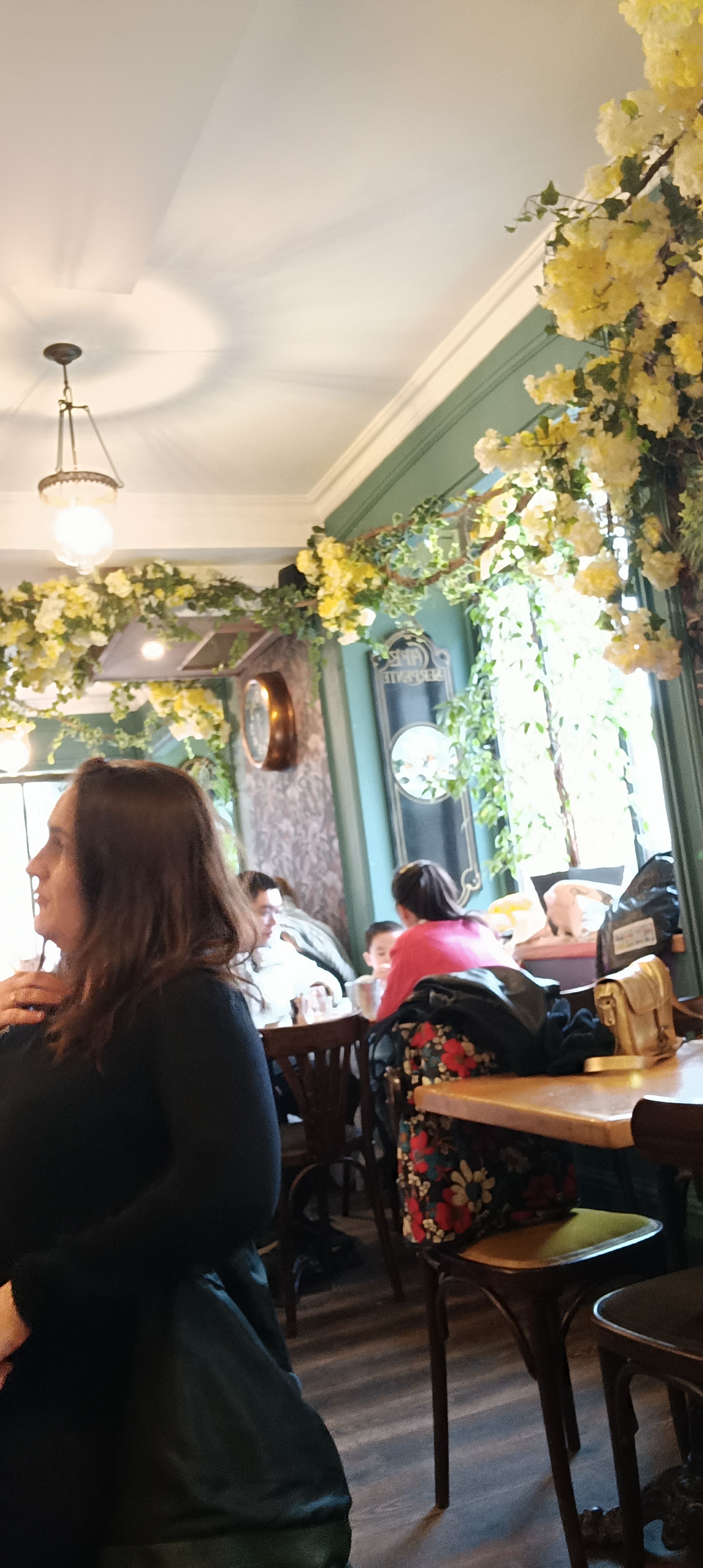 Café au décor très fleuri , excellent chocolat chaud .Serveuse souriante et agréable