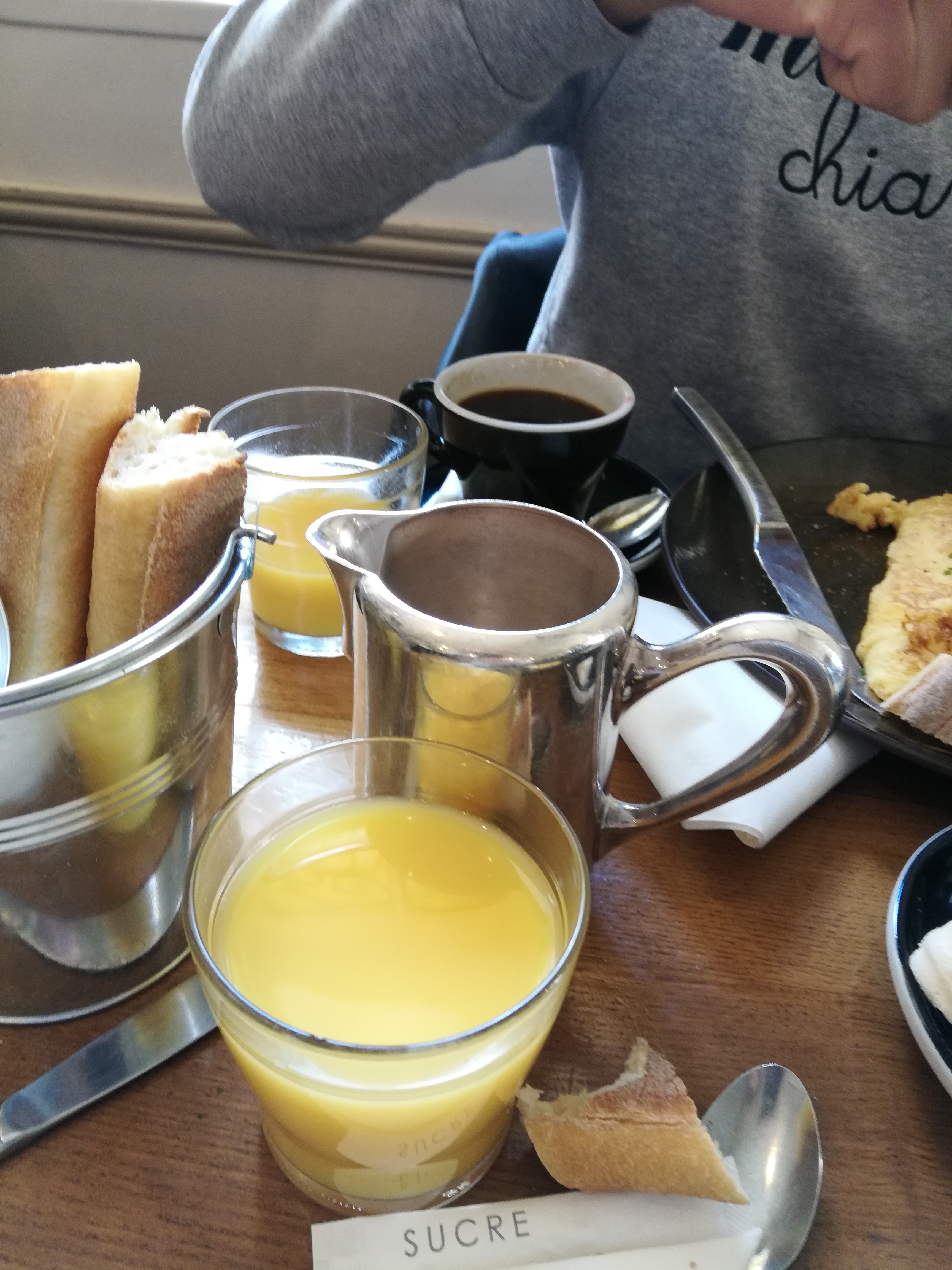 Jolie salle pleine de charme vintage, face à la cathédrale. Accueil sympathique. Petit déjeuner avec baguette bien fraîche, beurre et confiture et surtout un jus d'orange frais, doux, mousseux et délicieux comme je n'avais jamais bu.