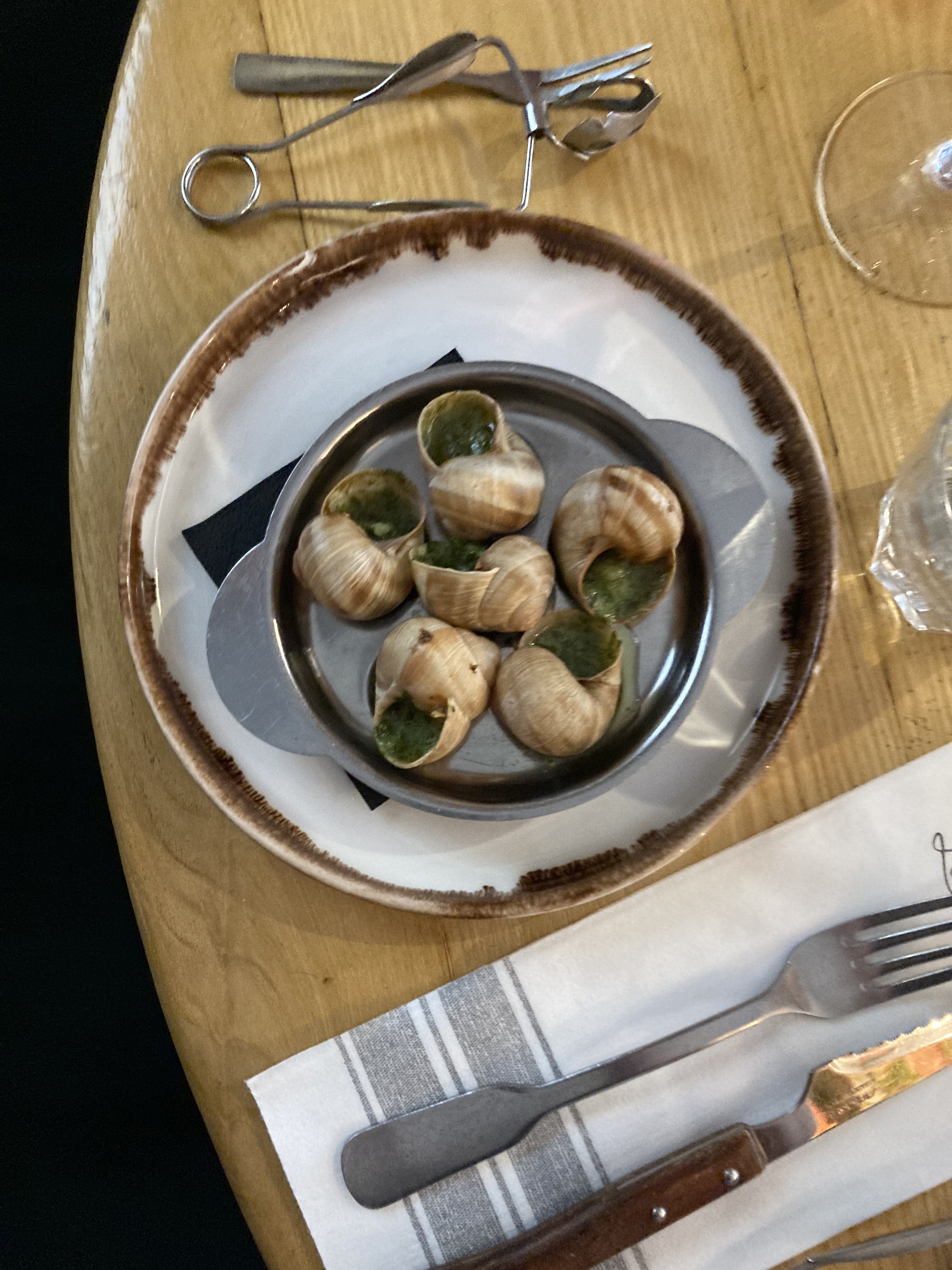 Un endroit très élégant et accueillant. Les serveurs sont extrêmement attentifs et sympathiques. Nourriture savoureuse. Tout est préparé exactement comme il se doit. Grandes portions de salades. Viande savoureuse et tendre. Délicieux desserts. Surtout, il est ouvert quand les autres établissements sont fermés. (Par exemple, c'est très important le lundi). Des escargots géniaux !