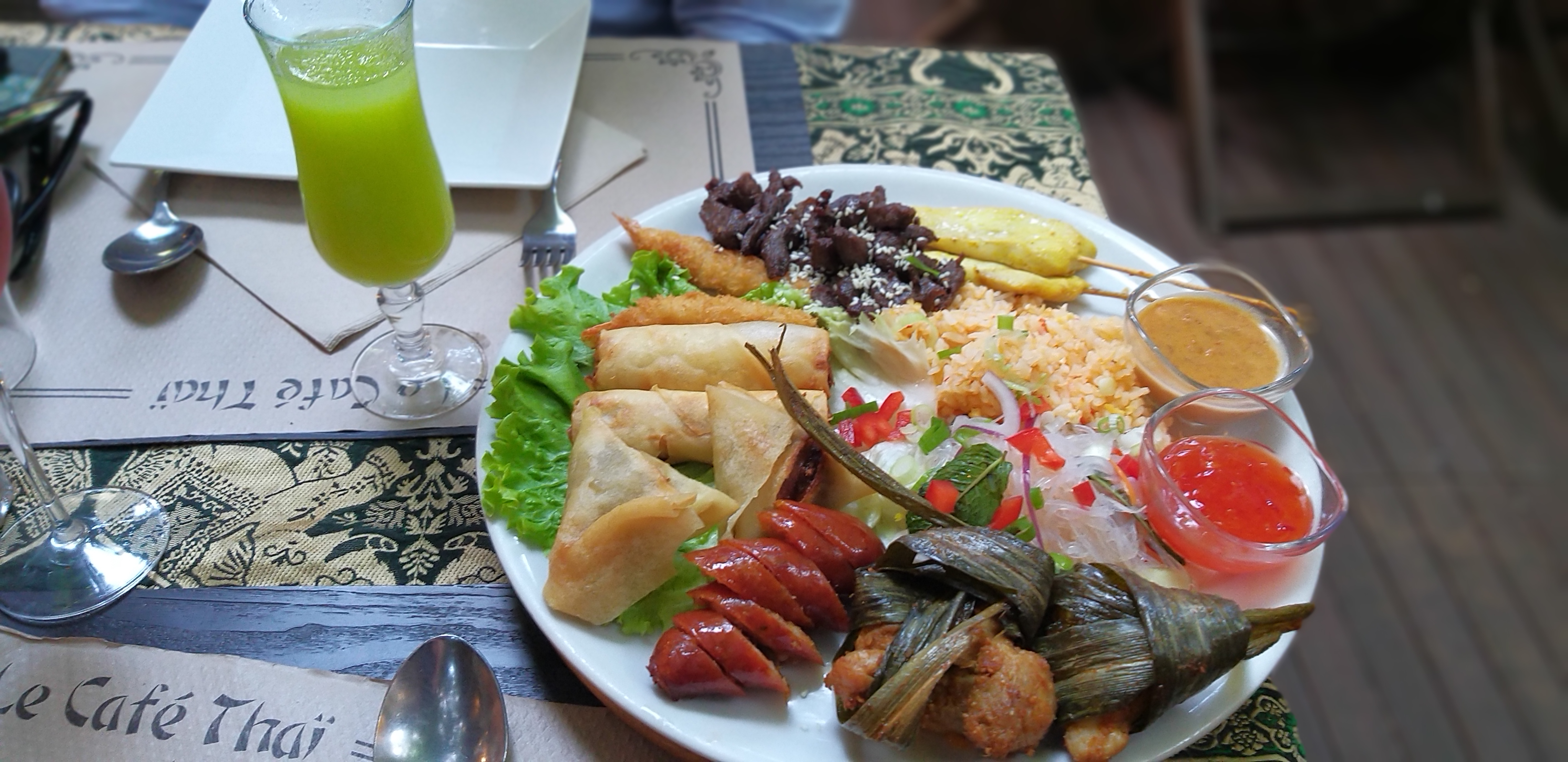 Restaurant qui ne paye pas de mine de prime abord mais très chaleureux avec un agréable patio. Des plats très copieux, nous y retrouvons les mêmes saveurs qu’en Thaïlande. Les prix sont vraiment abordable (très bon rapport qualité/prix)