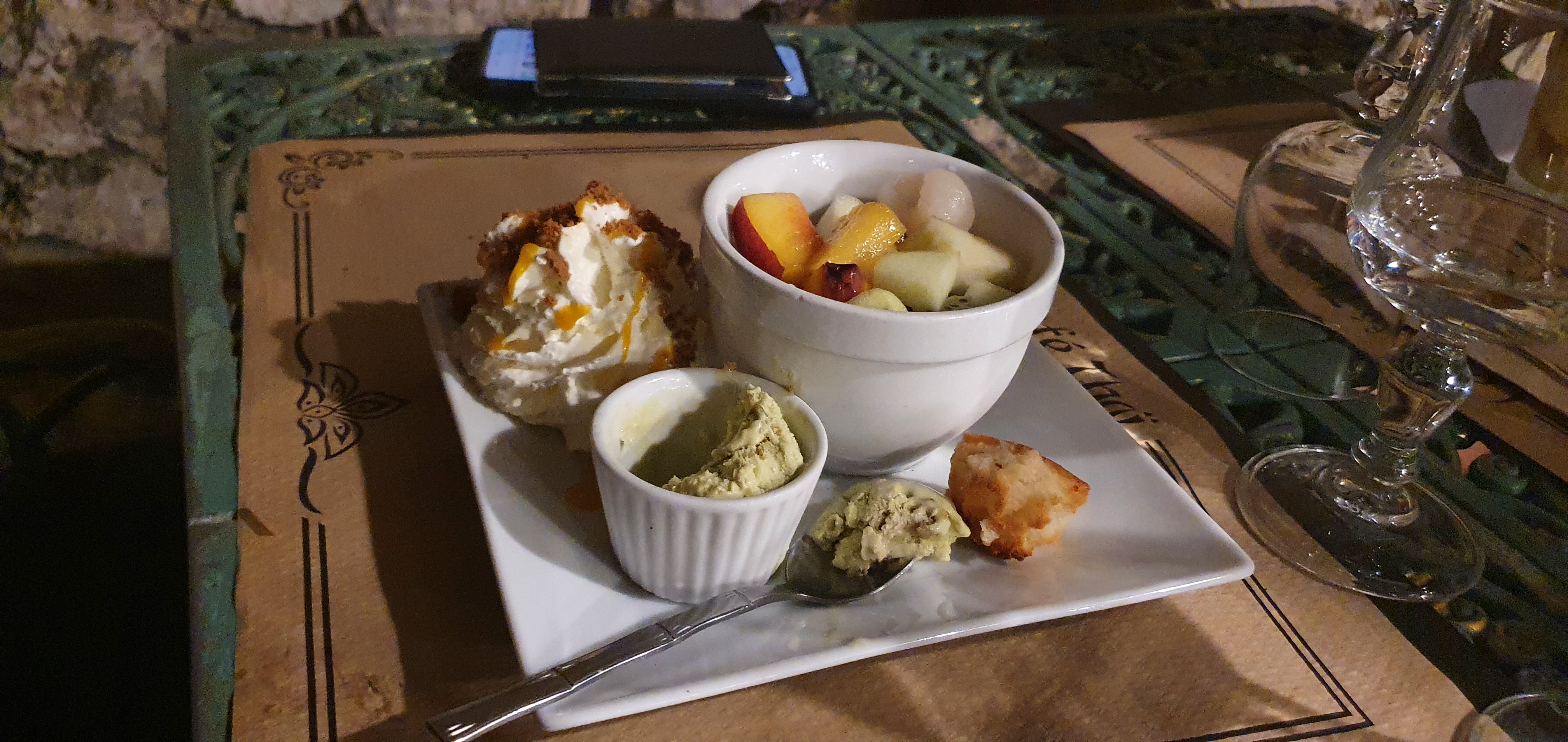 Dimanche soir, service ultra rapide et agréable en même temps. Plat copieux et très bon, prix très raisonnable. Endroit dépaysant en pleine ville avec jardin extérieur couvert et chauffé hors saison. C’est top !