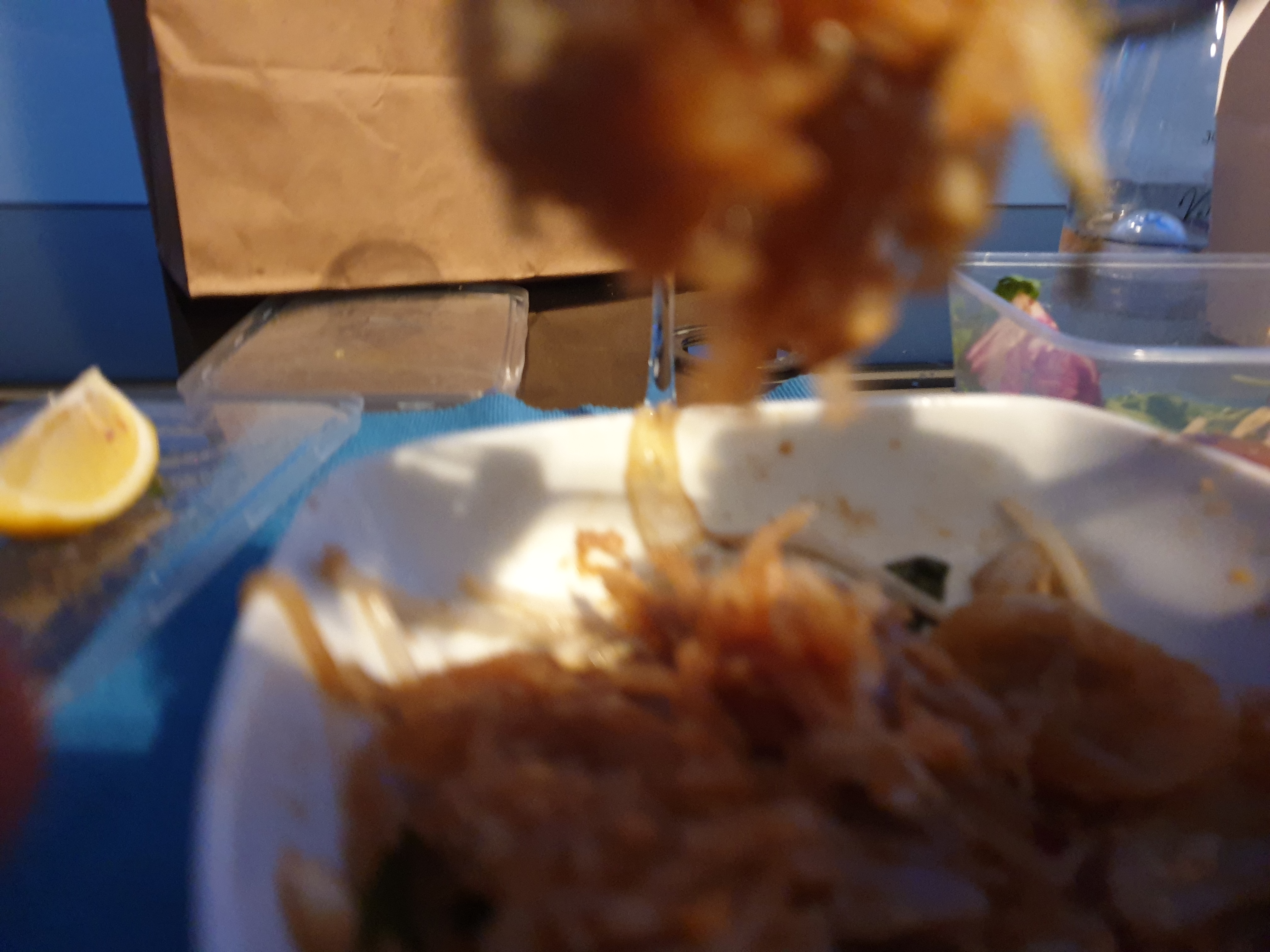 Pad thaï sans saveurs. Les nouilles forment un amas informe de type gélatineux. La salade n est pas fraîche. Le pire pad thaï de ma vie. Visiblement le cuisinier ne maîtrise pas la cuisson des nouilles de riz. Le reste de ma commande est aussi infect ( pas thaï tofu et sauté de riz poulet ananas cajou) Passez votre chemin