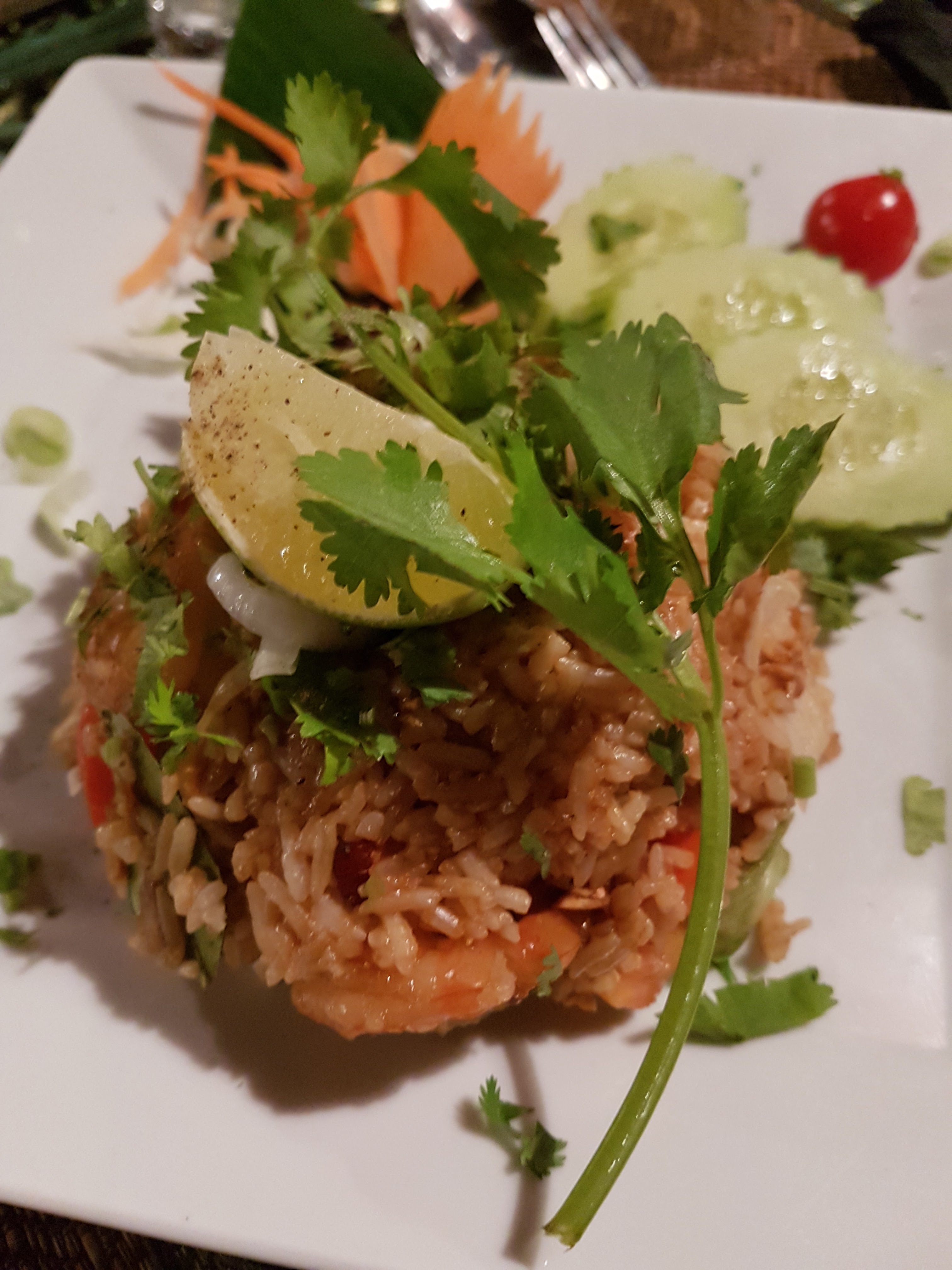 Très bon. Nous avons mangé dans le patio avec des amis, superbe endroit à la fois frais et décoré de manière royale. Les plats sont arrivés très rapidement. Le riz était incroyablement bien assaisonné, la portion était plus que satisfaisante et les prix étaient très correctes. Petit bémol pour le dessert qui n'était pas très bon, mais dans un restaurant Thaï je pense que le plat importe plus donc ce n'était pas gênant.