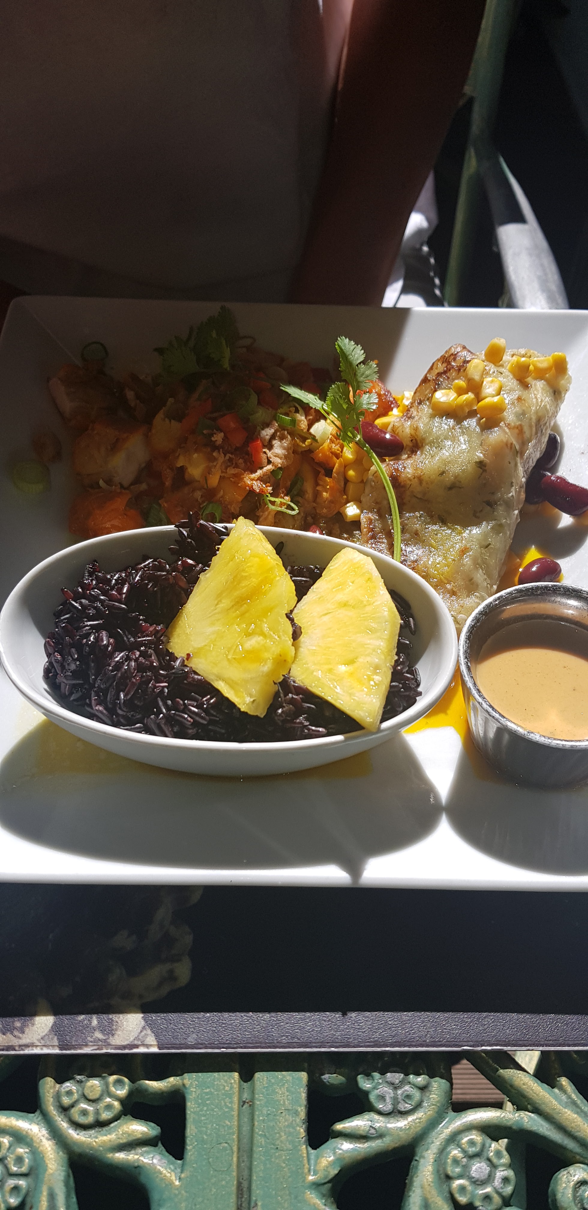 Belle terrasse exotique pour le lieu très urbain, on mange très bien et copieux pour les gourmands. Une adresse à retenir et surtout à y revenir. Merci (pas d'appareil à carte bleue pour le moment)