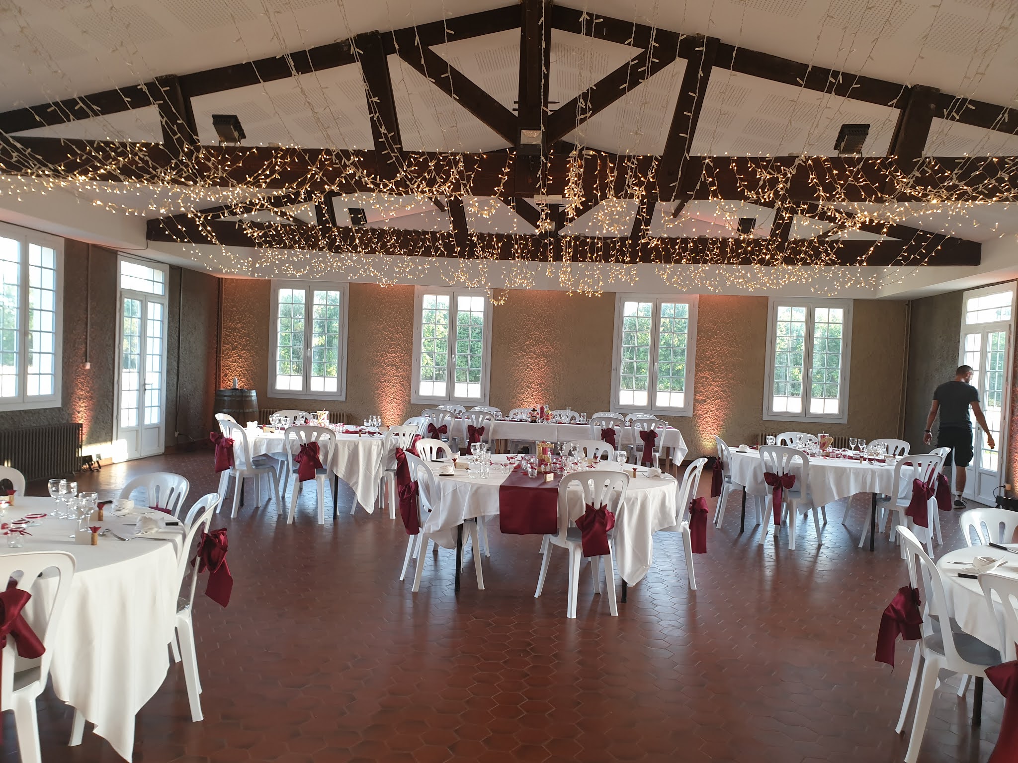 Nous avons fait notre mariage le week-end du 16 Septembre. Tout était parfait, le cadre, le service, le repas et l'acceuil. Le plafond éclairé fait son effet. Tous nos invités étaient conquis par la salle. Les propriétaires, Laurent & Manu, sont extras, la veille du mariage, je stressais pas mal et ils avaient toujours le petit mot pour réconforter. Petit plus que j'ai beaucoup apprécié, c'est lors du vin d'honneur, systématiquement, j'avais une serveuse qui venait m'apporter un amuse bouche. Je recommande ce domaine à 100%.
