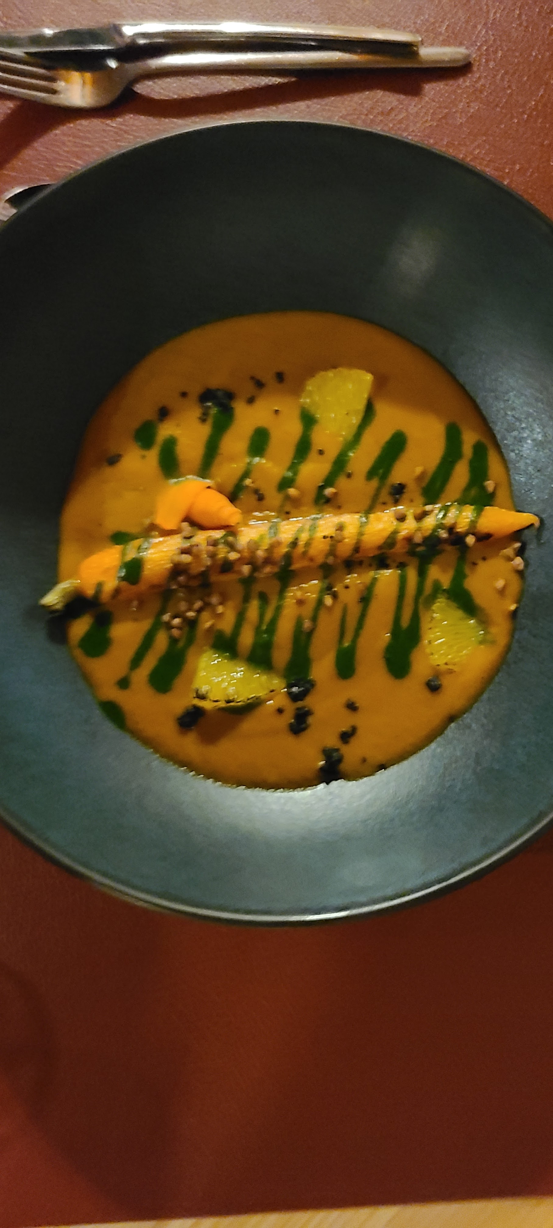 Un restaurant gastronomique local du couteau à viande au café, c’est du jamais vu pour ma part. C’est vraiment le point qui nous a plu, ainsi qu’évidemment les saveurs des plats qui nous ont été servi. Un menu à 4 plats qui a duré plus de 3h, une ambiance qui donne la sensation d’avoir été invité chez un ami ; de part le décor et le nombre de table limité, très intimiste, mais aussi par la gentillesse et convivialité du personnel aux petits soins de leurs convives. À ne surtout pas manquer si vous êtes de passage dans la région !