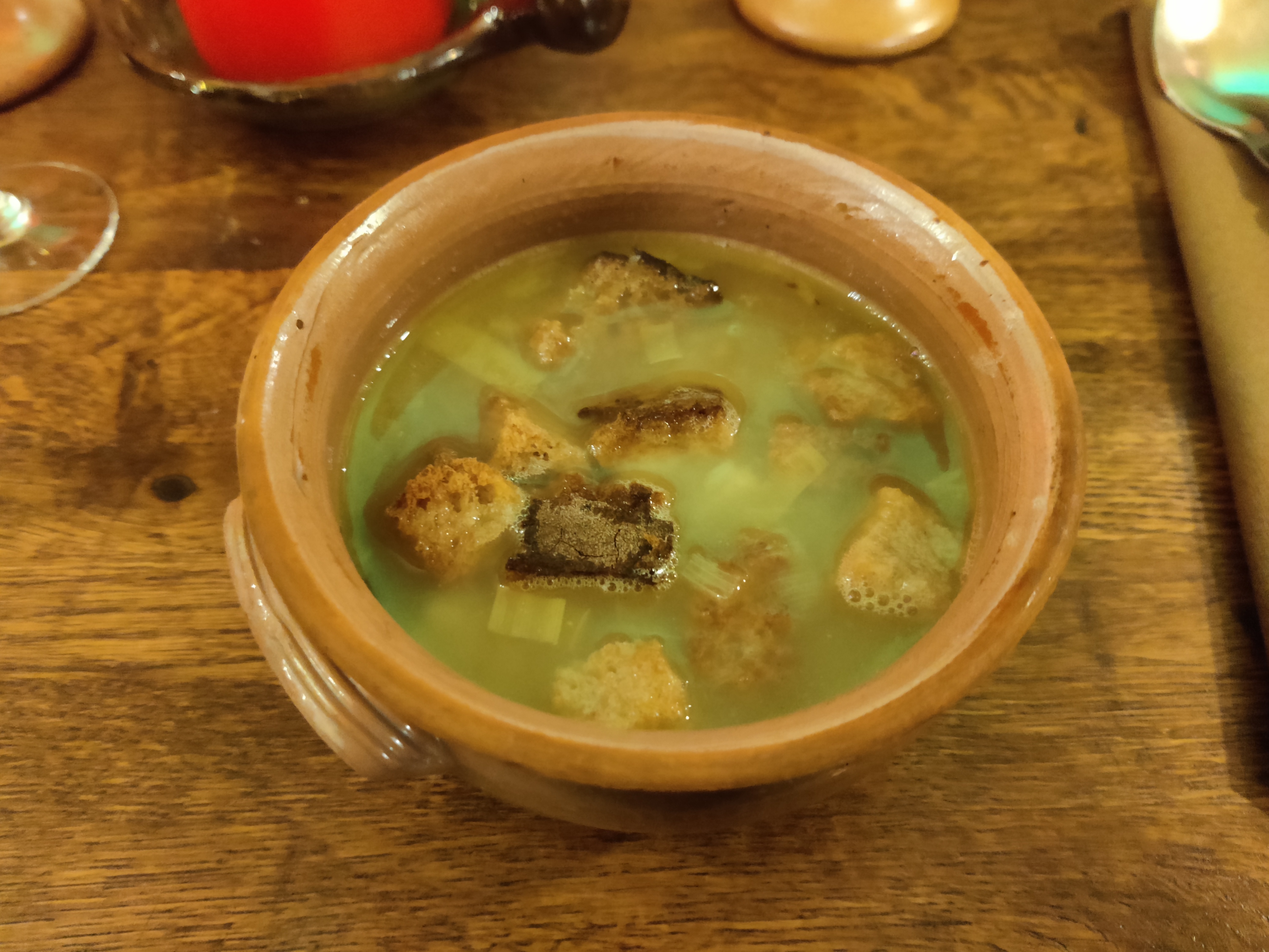 Une superbe decouverte! Produits frais, locaux, cartes changeant tous les jours fonction des arrivages, des saisons,... Respect des recettes medievales. A decouvrir et redecouvrir. Hypocrase au chataigne succulent! Ce soir nous avions une tarte à l ail a tomber! Un ragout de porc delicieux et un dessert au millet surprenant! Pour finir n hesitez pas a prendre un chocolat chaud! Mieux vaut reserver! A perfect place to discover the medieval food! Rating : 5/5! Delicious! Better reserve to be sure to have a seat!