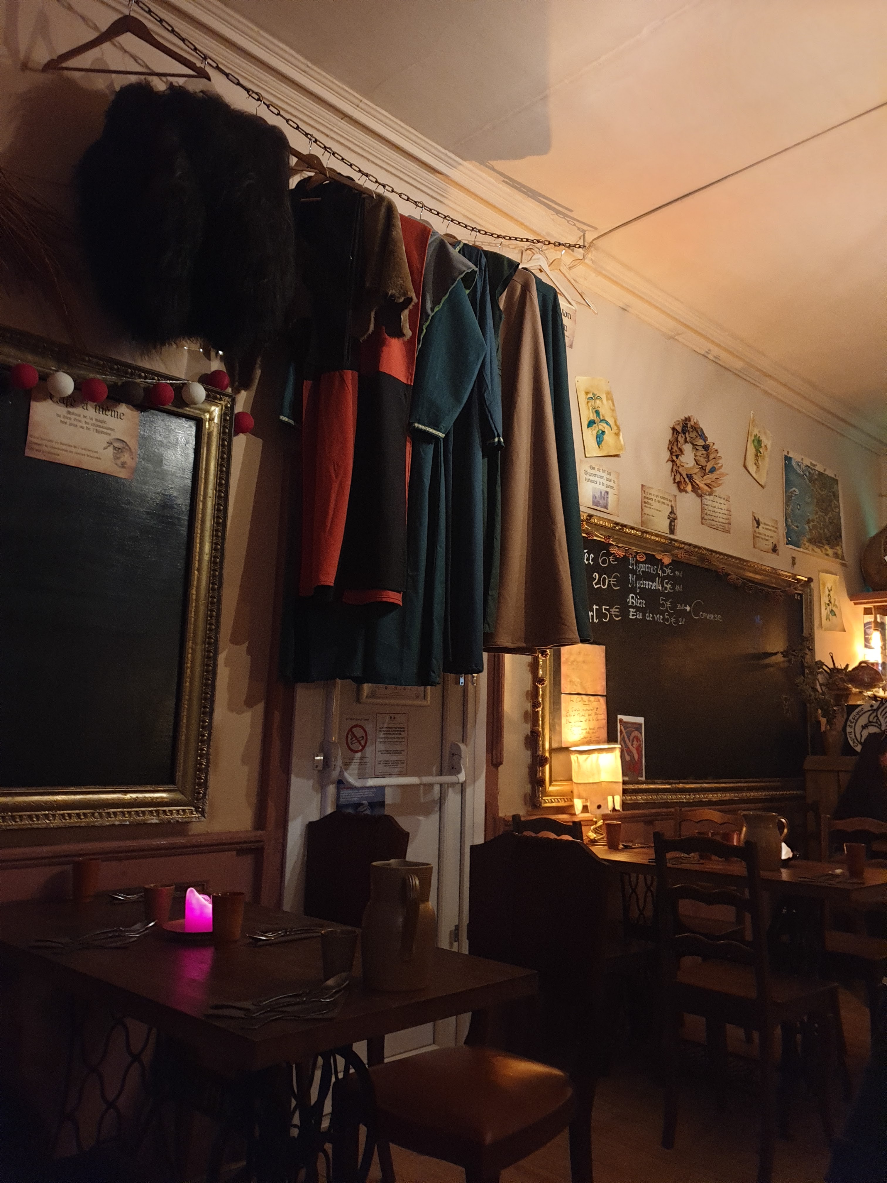 Bar/restaurant/boutique de magie à l'ambiance atypique où l'on prendra le temps de vous expliquer le pourquoi médiéval de ce qu'il y a au menu, selon les inspirations du moment et à un prix très raisonnable.
