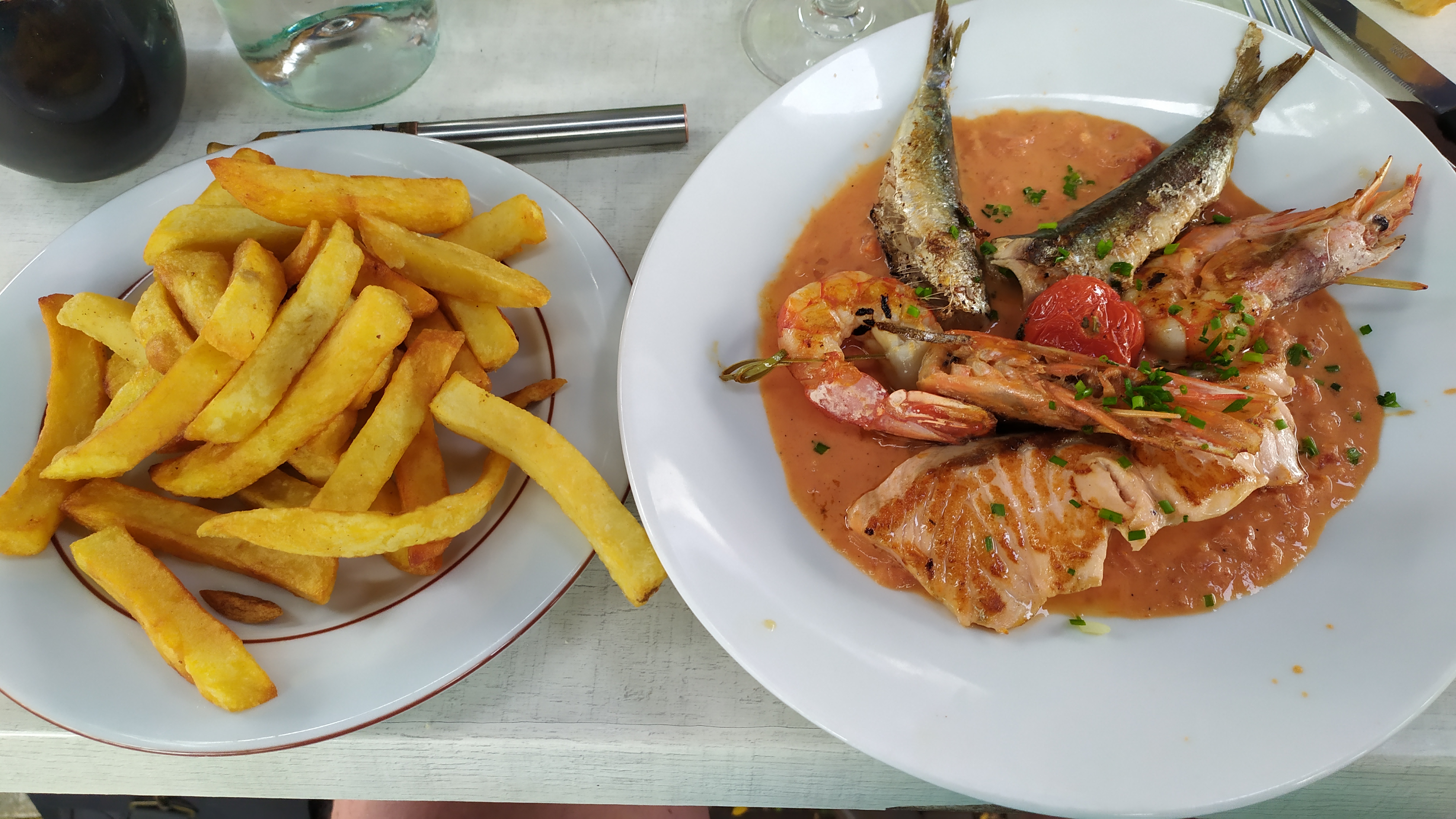Choisie pour sa carte assez diversifiés. Plats plus que copieux pour les taglitelles( qui sont plutôt des liguines 😁) aux st Jacques et la plancha de poissons st Jacques,crevettes et poissons avec riz basmati sauce citron un.vrai délices et personnel très agréables.