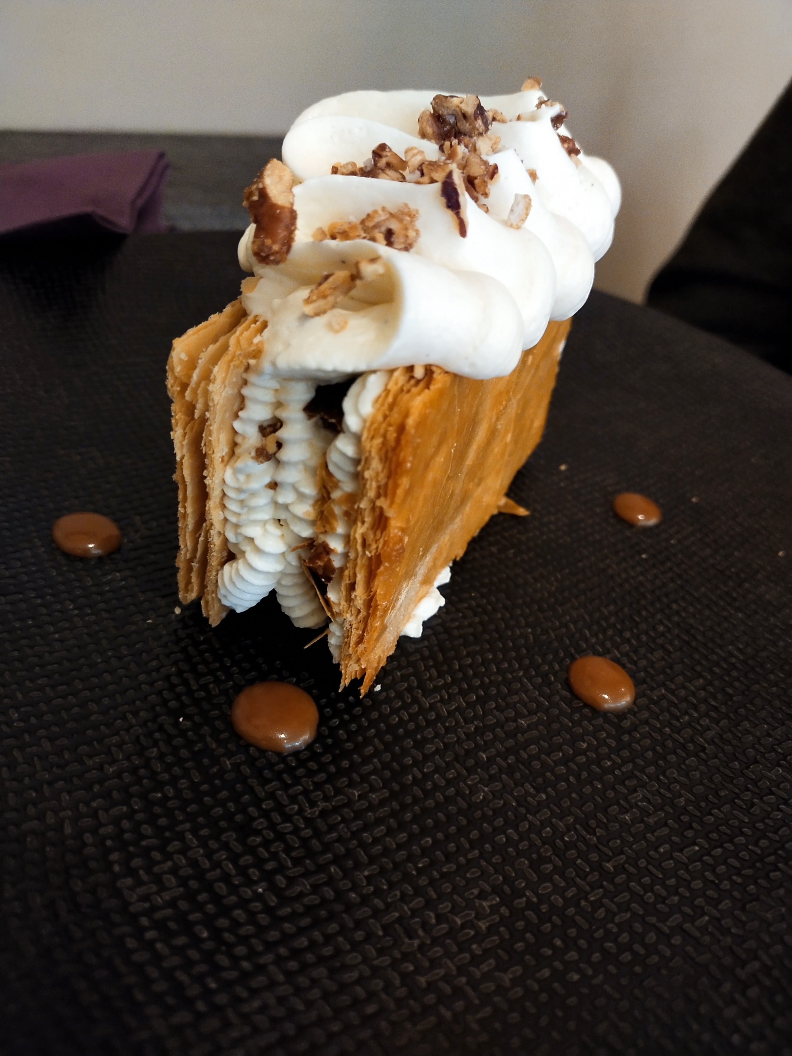 Accueil trés chaleureux, nous avions commencé par notre apéritif accompagné d'une rillettes ete de cochon à l'orange... Une tuerie. En suite, notre plat, le magret de canard avec sa purée et chips de patate douce, sans oublier les desserts (le vacherin et le millefeuille) vraiment très bon, nous avons passé une trés bonne soirée, bravo à toute l'équipe ! Avis aux futurs clients, prenez le temps de vous y arrêtez.