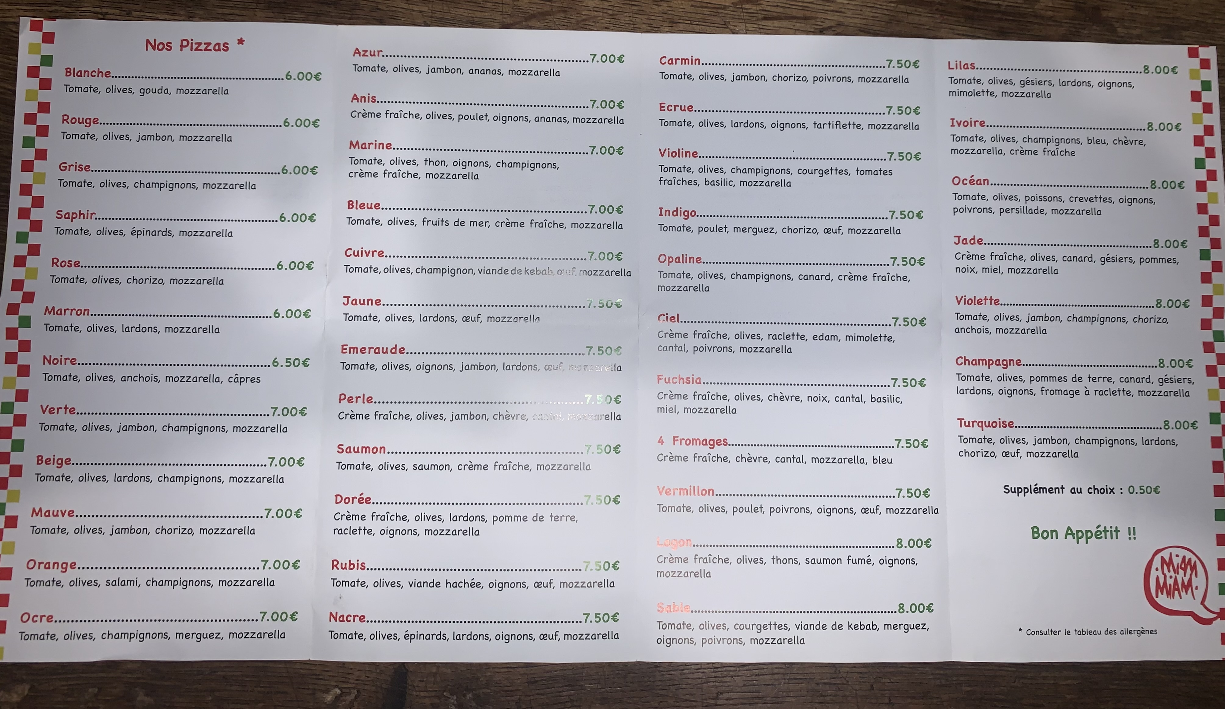 Pizzas au feu de bois au prix imbattables De 5.5€ à 7.5€ Avec ça on en profite deux fois durant notre séjour. Attention prévoyez de commander avant car le succès étant, la pizzeria ne peut satisfaire tout le monde !