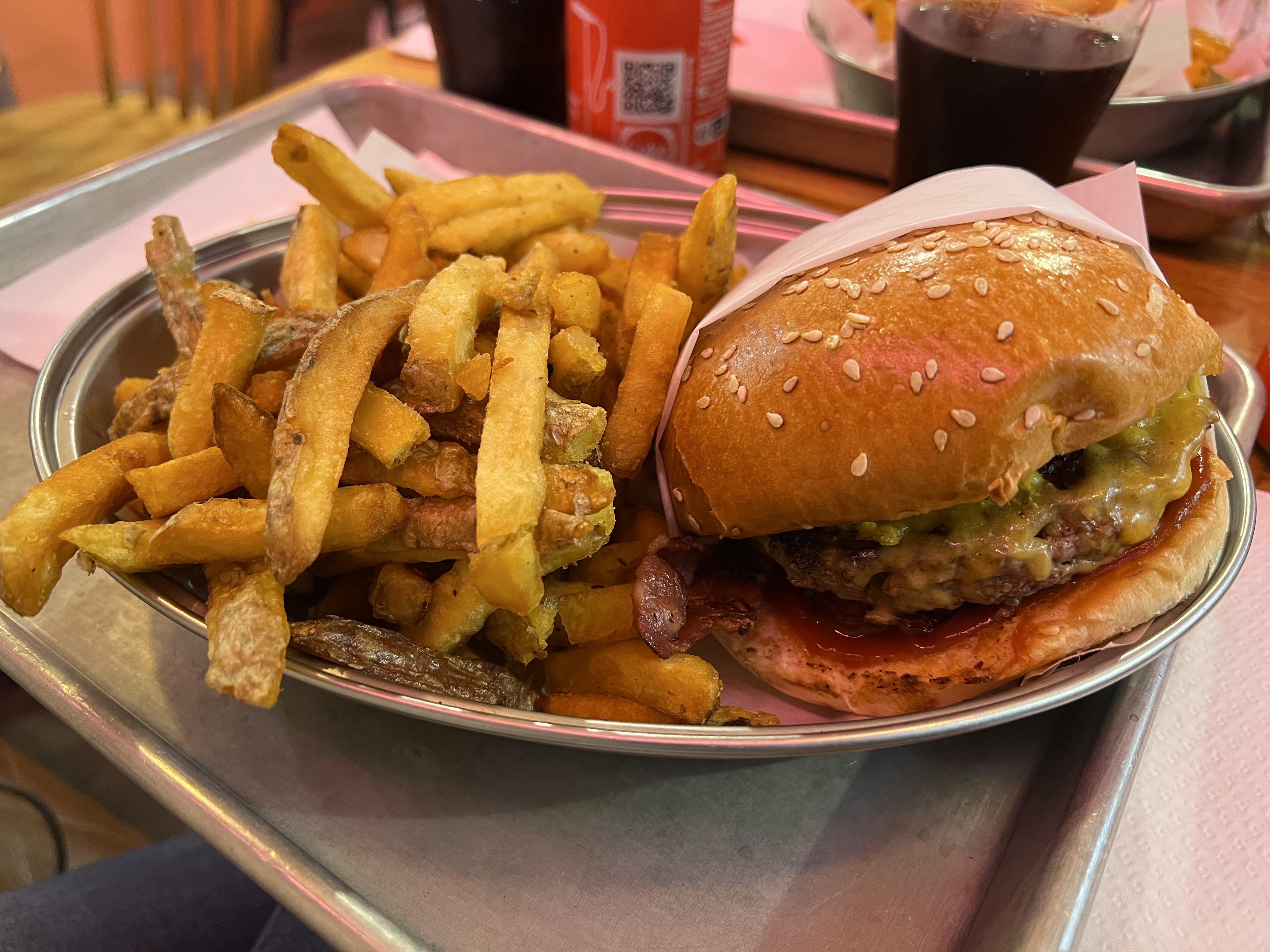 Bonne adresse. Frites maison délicieuses. J'ai pris un cheeseburger au bacon et j'ai pu choisir la cuisson du steak. En plus la portion est copieuse. La coleslaw est très bonne aussi