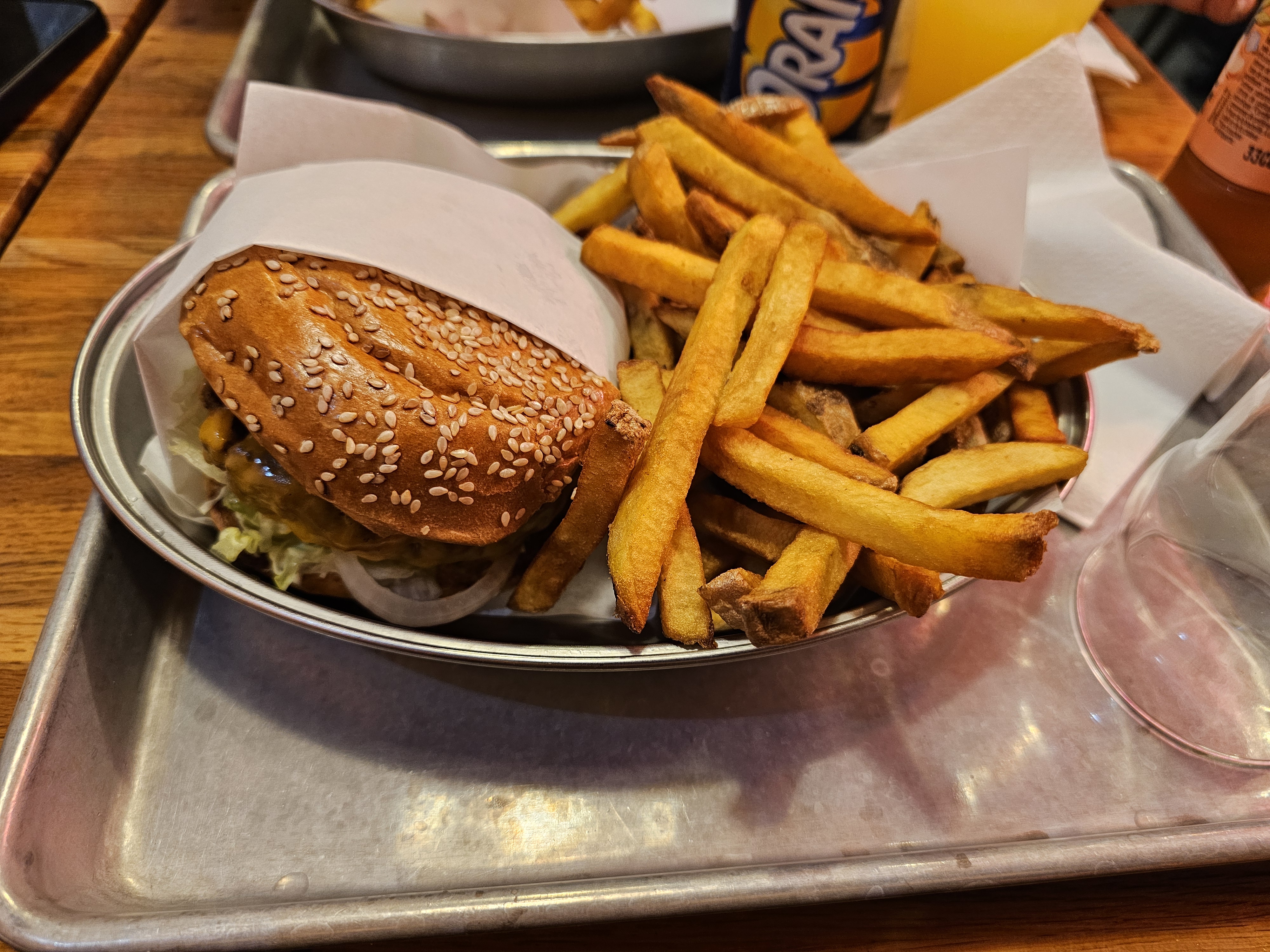 Les burgers sont vraiment bons, on est vraiment sur un burger bien fait, sans prétention et qui possède l'âme d'un burger mangé en vitesse, mais qui régale en bouche, de la fast food quoi. Les frites sont très bonnes, point faible: les sauces, des classiques heinz mais qui manquent d'originalité, sur le coup je prefere une mayonnaise five guys par exemple. Le service est agréable, apporté à la table. Vraiment une bonne expérience, je recommande.