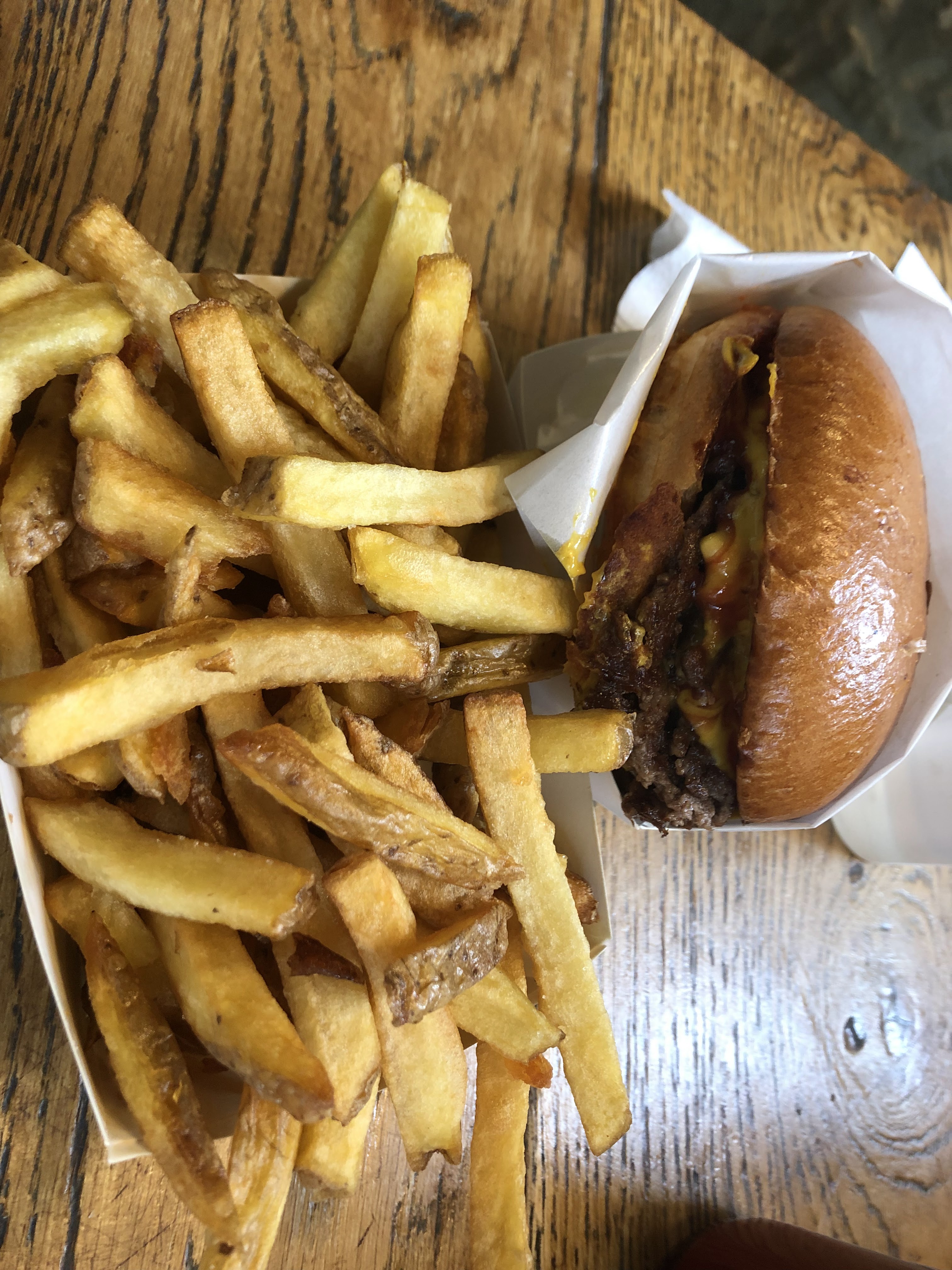 Nous sommes venus à 2 minutes de la fermeture (nous voulions tenter au cas où) et ils nous ont quand même accueilli pour une vente à emporter. Le burger était plutôt bon, pas du tout sec et bien pour laisser une place aux frites qui elles étaient bonnes mais sans plus mais la quantité copieuse. Néanmoins, le prix est trop élevé
