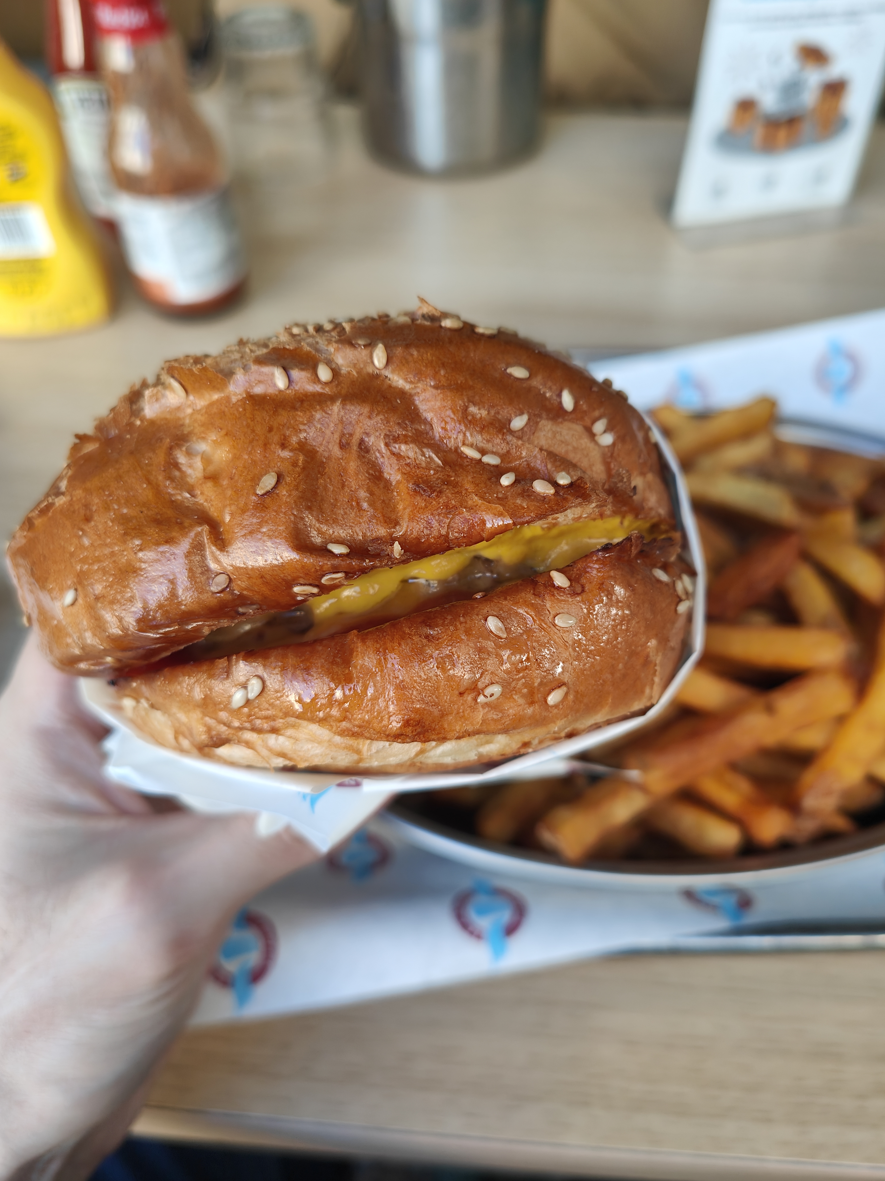 Bon restau de burgers ! J'ai pris le cheeseburger et franchement j'ai bien aimé. Vous avez déjà un bon fournisseur de pains, il est moelleux mais pas trop (ça fait un peu pain américain importé) Ils sont très généreux en frites, tellement que je n'ai pas réussi à finir 😂 Plusieurs sauces maison La salle a une vingtaine de places Pas de terrasse Une grosse équipe, gage de qualité... L'équipe est sympa au passage Petit axe d'amélioration : proposer une boisson maison, genre une citronnade, ça ne coûte pas grand chose et c'est mieux que vos canettes