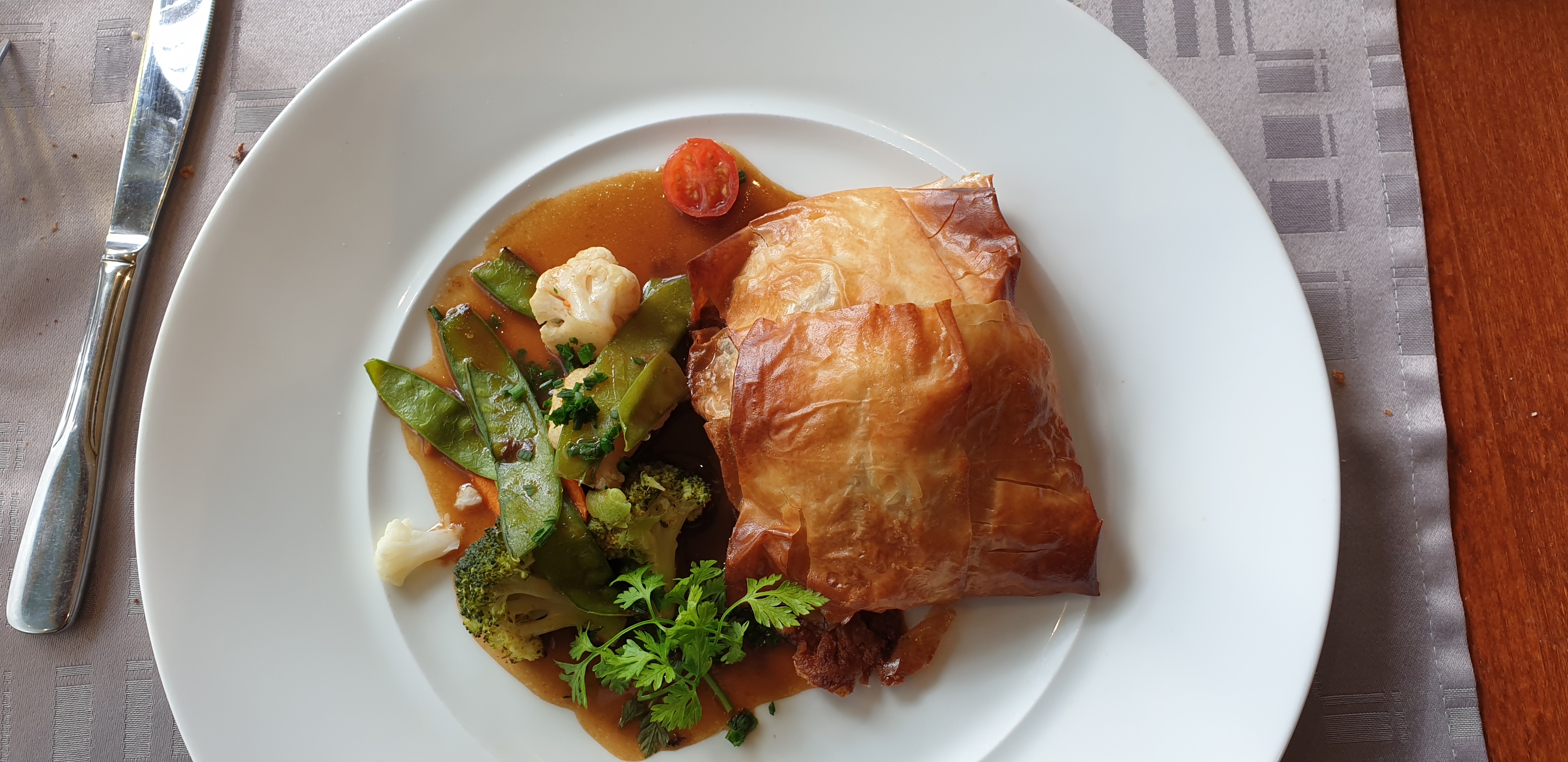 Nous avons très bien déjeuné, avec des produits frais, et le service était de qualité. Les moules étaient très bonnes, le plat à base de ris de veau, de langoustines et de Saint-Jacques était succulent. Les crêpes Suzette étaient à tomber par terre. Je recommande vivement.