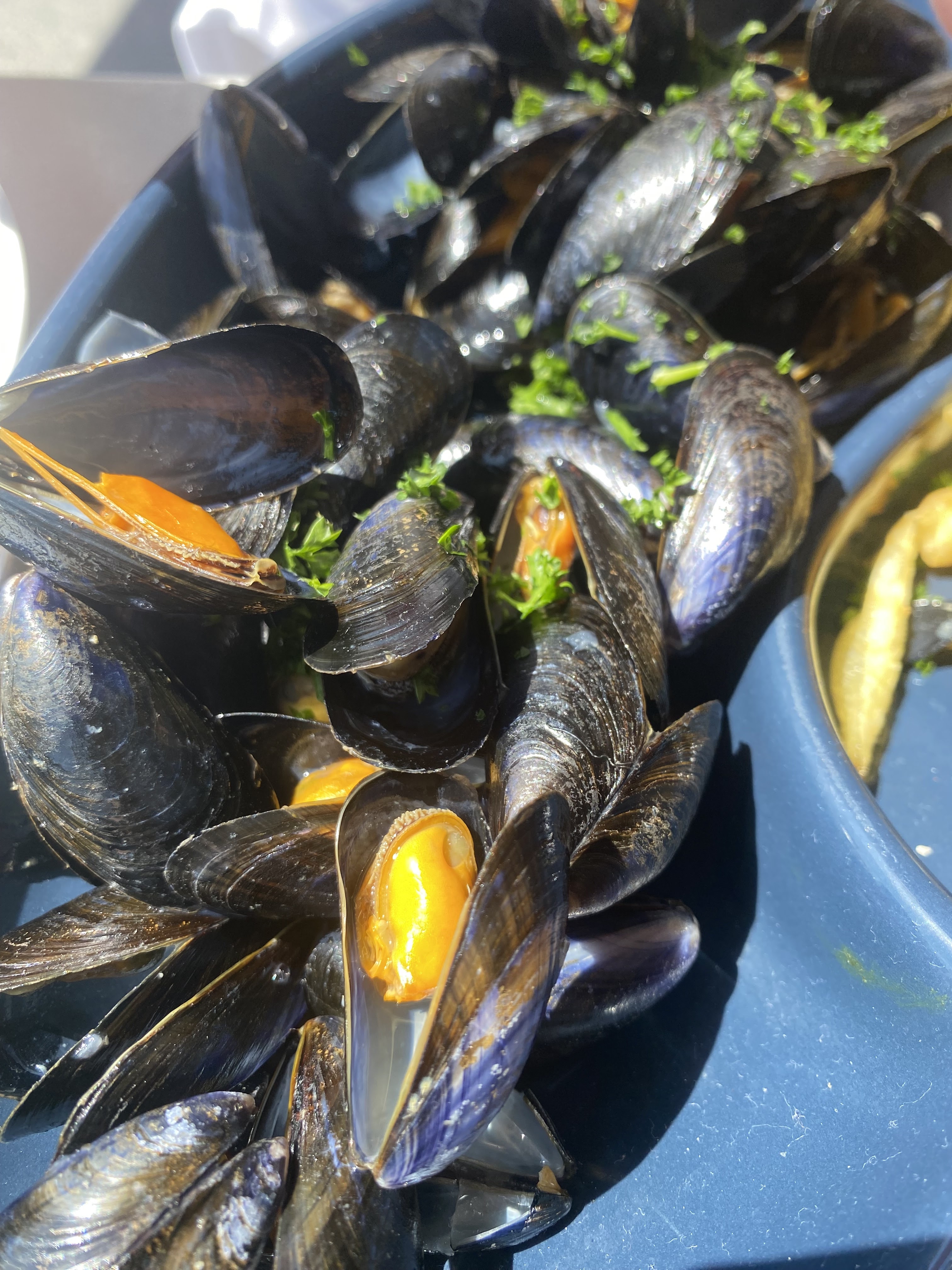 Restaurant chic mais serveur/serveuse sympa et décontracté. Nous y étions pour manger des moules frites avant le feu d'artifice. Elles sont très bonnes. Le prix nous a un peu refroidit au début (17e marinière 18e crème jusqu'à 24e pour roquefort ou chorizo) sans les frites (rajouter 5e le bol) mais il y en avait bcp et elles étaient bien chaudes jusqu'aux dernières (ce qui est assez rare). Elles étaient mêmes meilleures natures, très bonne qualité. Bien situé également sur le port. C'était un bon moment.