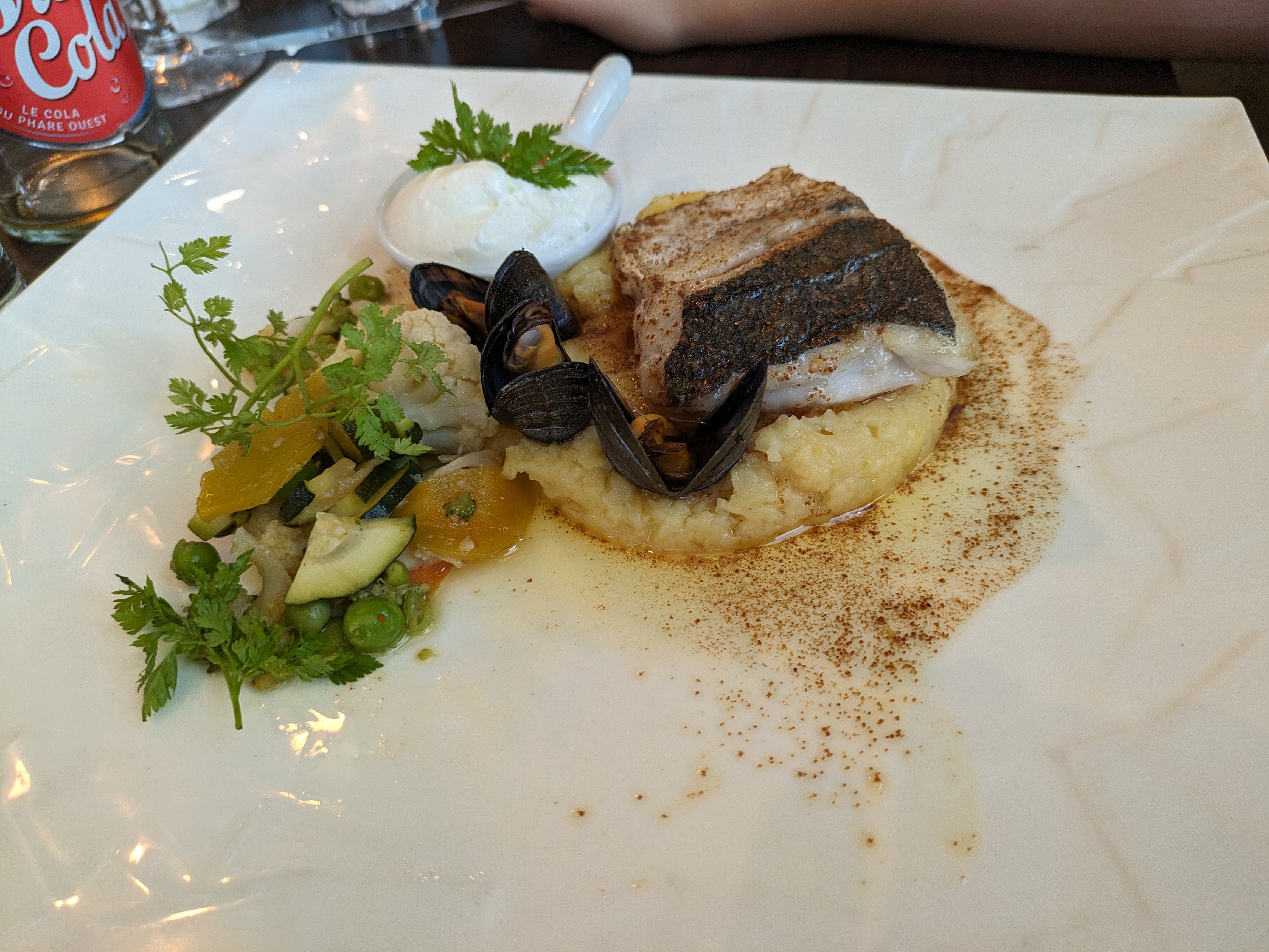 Accueil super, entrée intéressante (pressé de canard)… et puis c’est tout, des moules trop cuites, non triées (80% étaient de la bouillis) trop cuites et trop salées (faut le faire) , en plat nous avons pris du poulet… surgelé ; mauvais, le genre de plat que l’on fait lorsqu’il n’y a plus rien à manger dans le frigo un dimanche soir… et le dessert… un cancalais… mon dieu… passez votre chemin … l’une des pire expérience culinaire que j’ai vécu. Après l’entrée je ne pensais pas poster un tel avis… à éviter