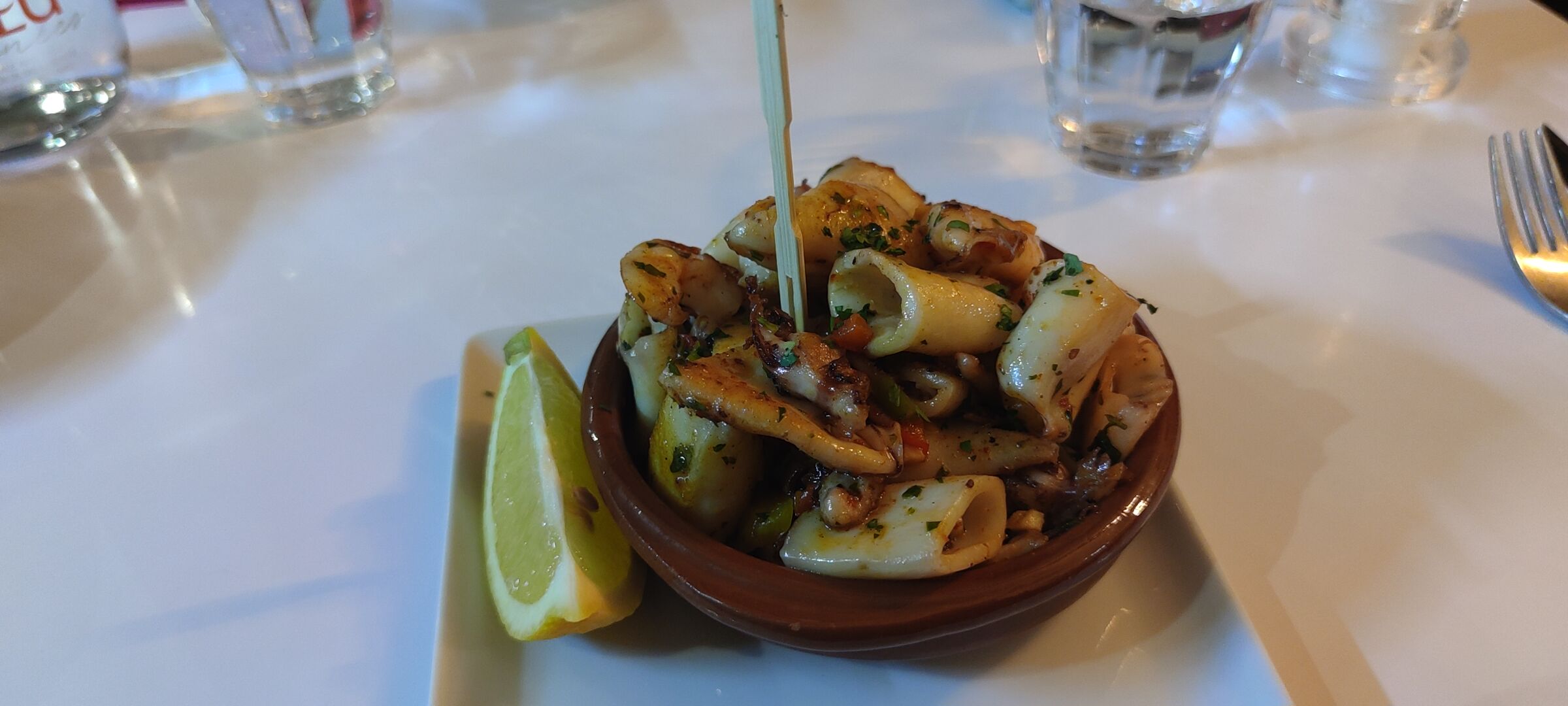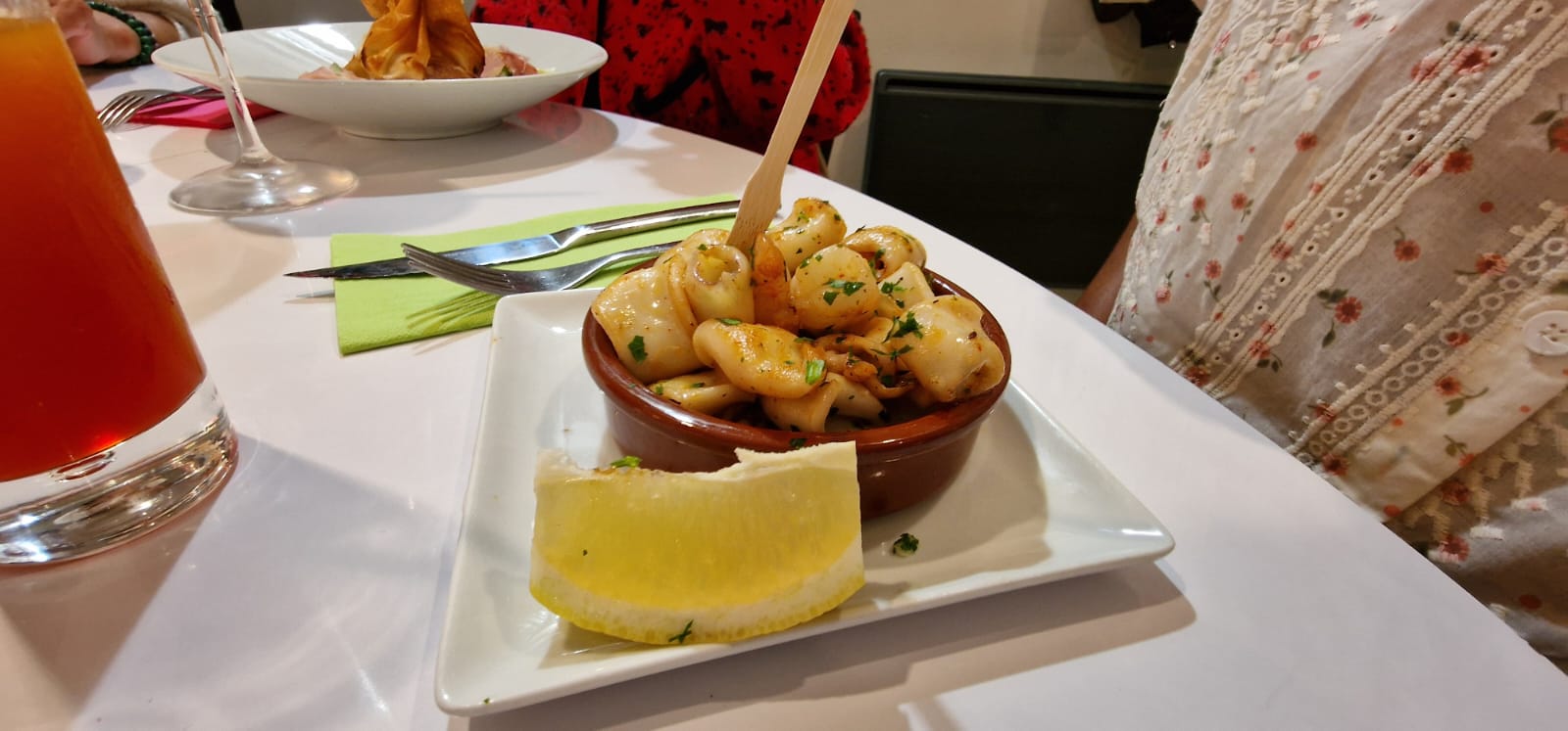 Accueil chaleureux assiette de chipirons un régal le dessert délicieux j y reviendrai très vite avec des amis