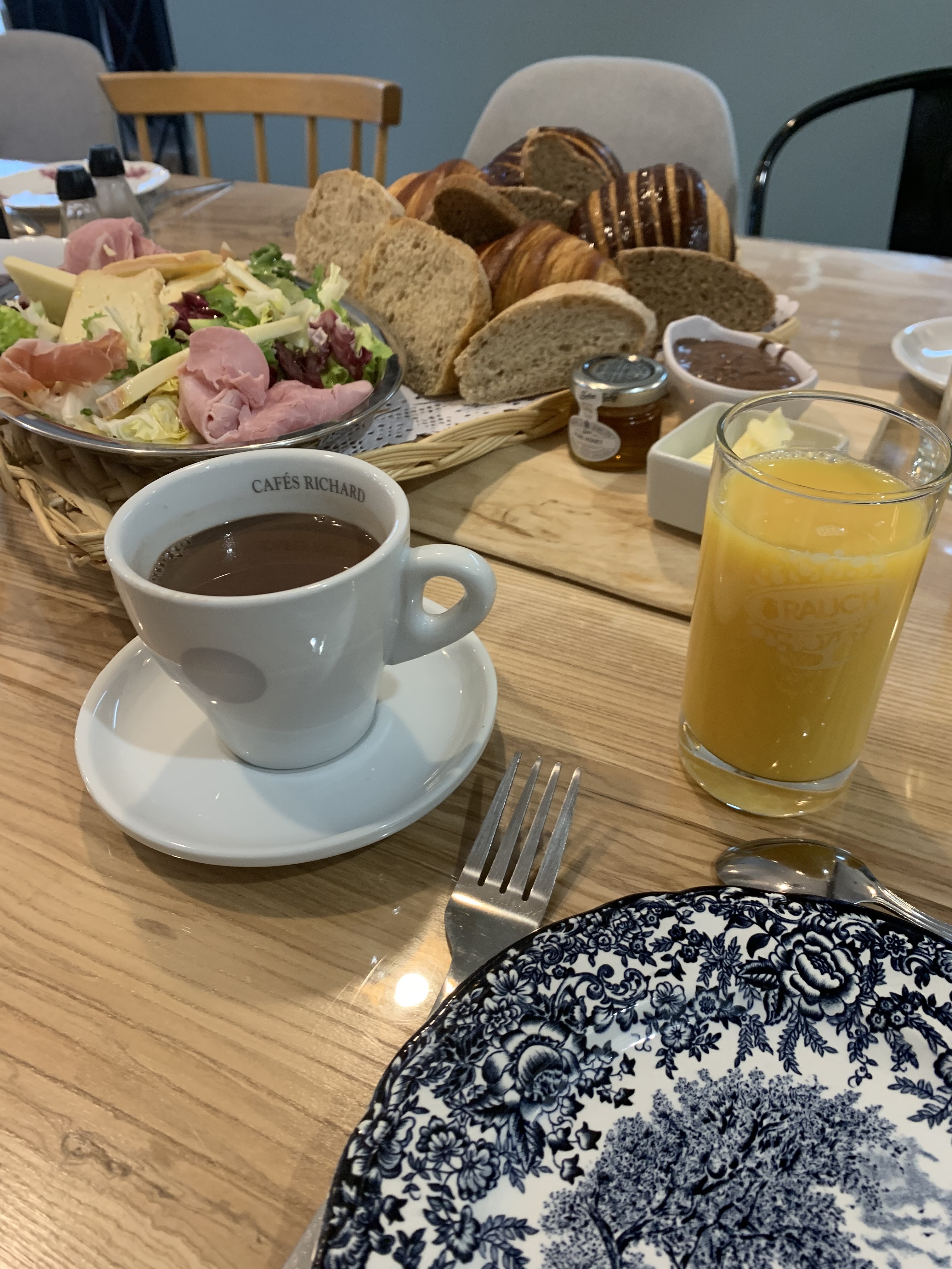 Accueil très chaleureux, familial, comme à la maison. 🥰viennoiseries et brunch du dimanche , un régal pour les yeux et les papilles 👀😋🥐🧀 juste parfait ! Merci Stéphanie et Steeve ✨️