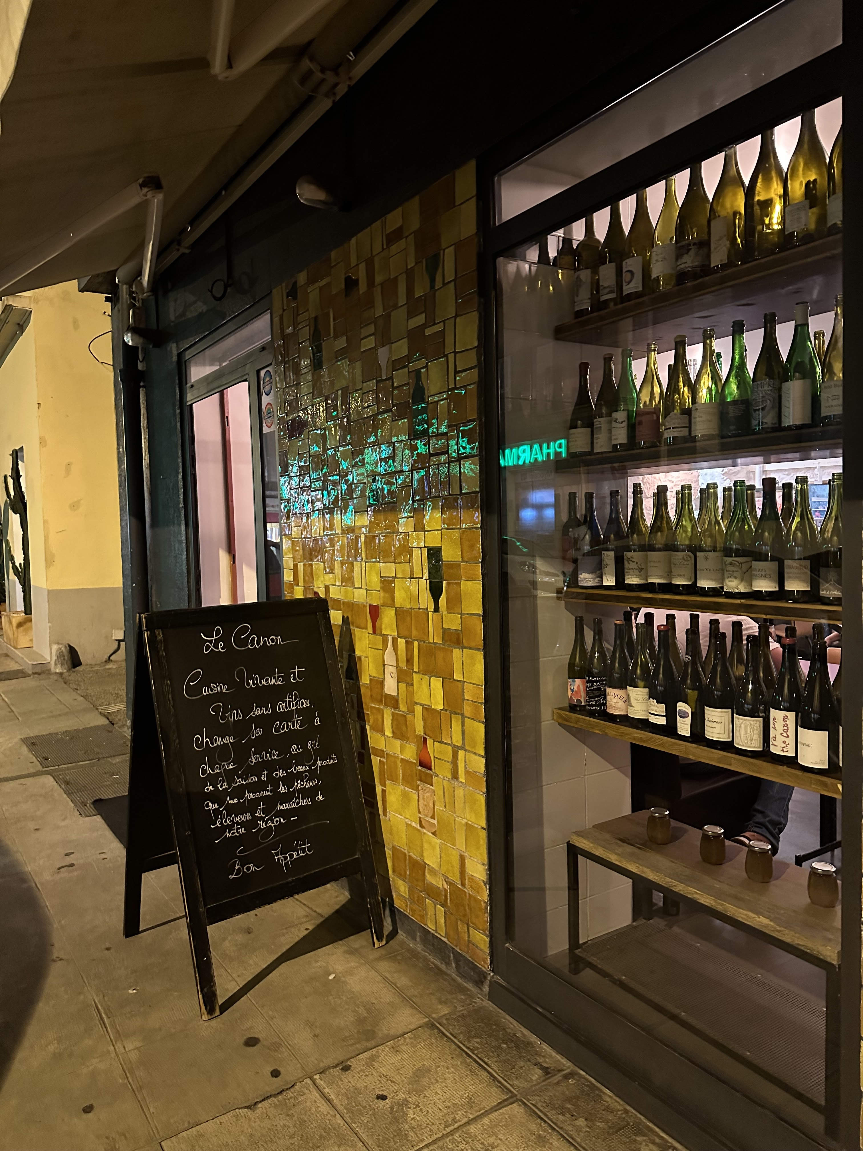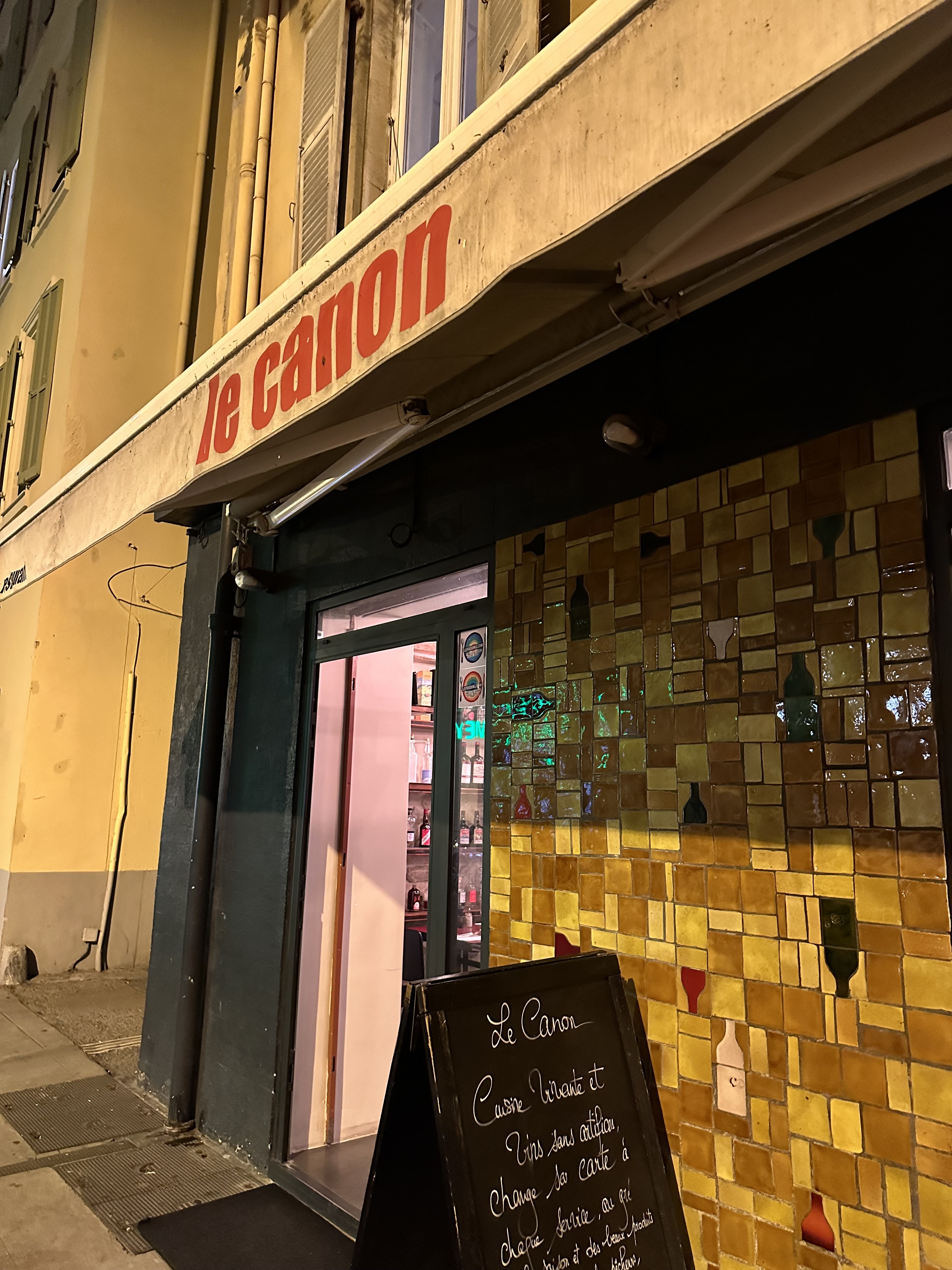 Nous avons passé une nuit à Nice et avons eu la chance d'avoir une table au Canon. Vins intéressants et ésotériques, nourriture réfléchie et service très sympathique.