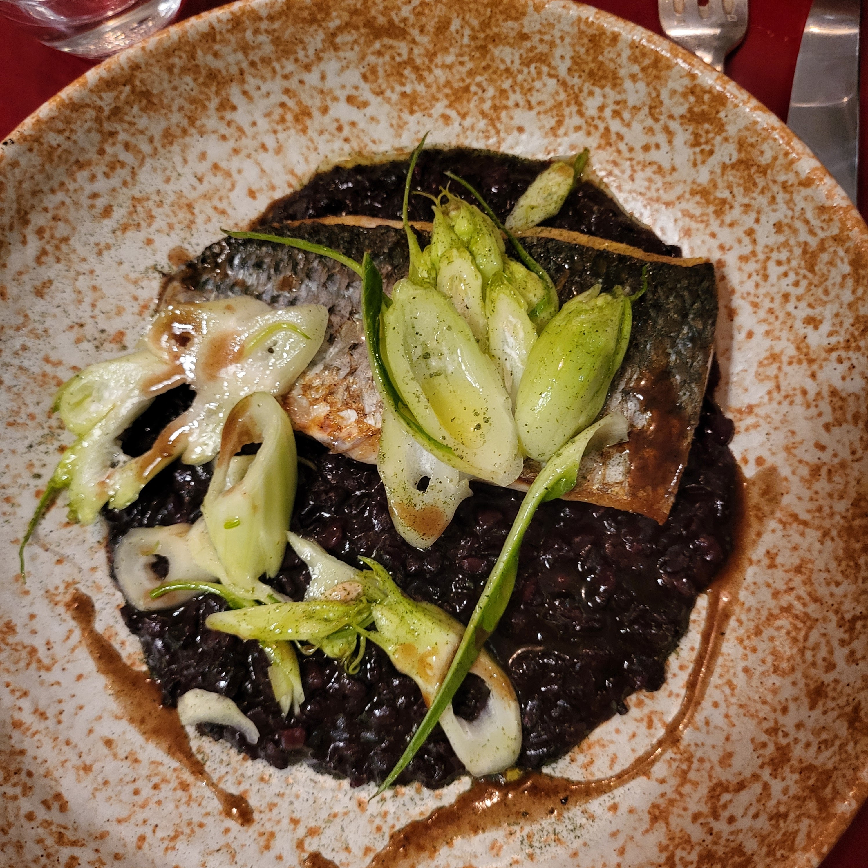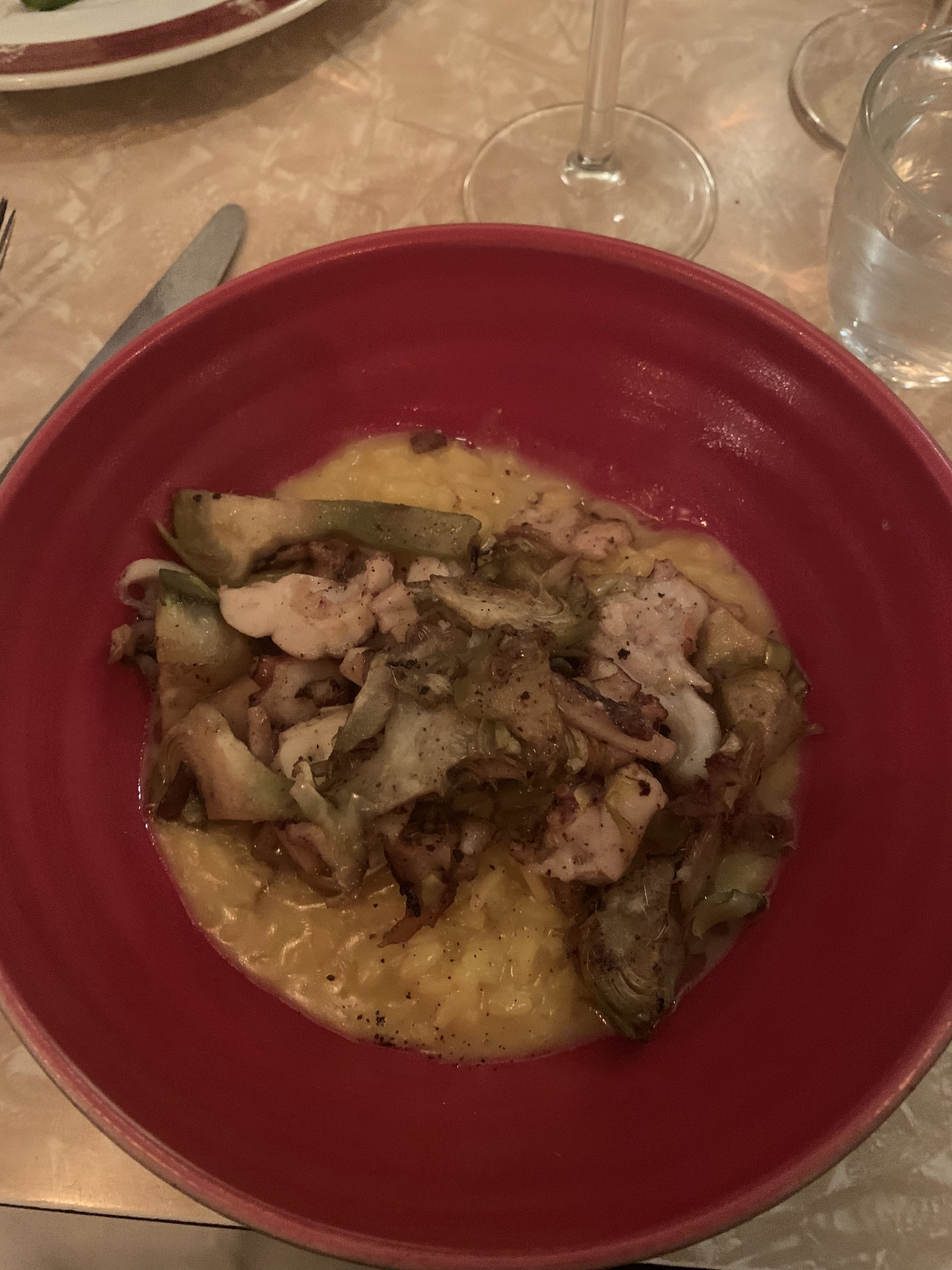nourriture fantastique! Il y avait le risotto et les saveurs étaient parfaitement équilibrées mais le service était correct… j'ai attendu 10 minutes pour m'asseoir et 15 autres pour voir le menu. nous avions l'impression d'avoir été ignorés toute la nuit. mais l'ambiance était très chaleureuse. J'aurais adoré voir un menu pour le vin car on ne nous a donné que ce que le serveur voulait nous donner.