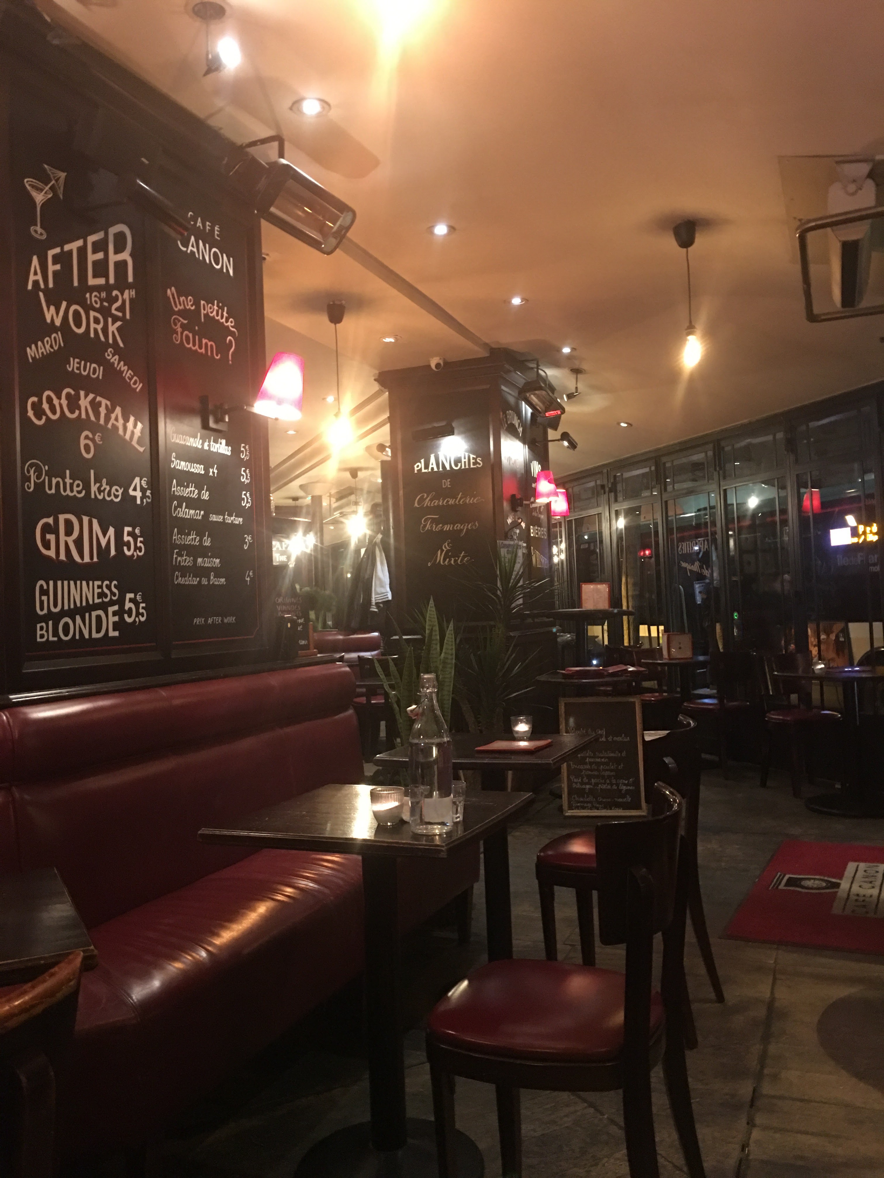 Parmi les clichés sur Paris, il y a le serveur de brasserie hautain et malpoli, qui vous insulte et vous sert un café ignoble et trop cher. Si c'est une règle, alors le Canon est l'exception. Ici, la nourriture est bonne, la carte courte mais complète, le décor plutôt sobre mais sympa, et les prix sont ceux d'une brasserie bien placée - un peu chers, mais pas exagérés. Mais ce que vous retiendrez, c'est l'équipe toujours souriante. Selon les jours, ils sont vaneurs, blagueurs, ou au contraire sérieux et concentrés en cas d'affluence, mais toujours aux petits soins du client. Un plaisir.