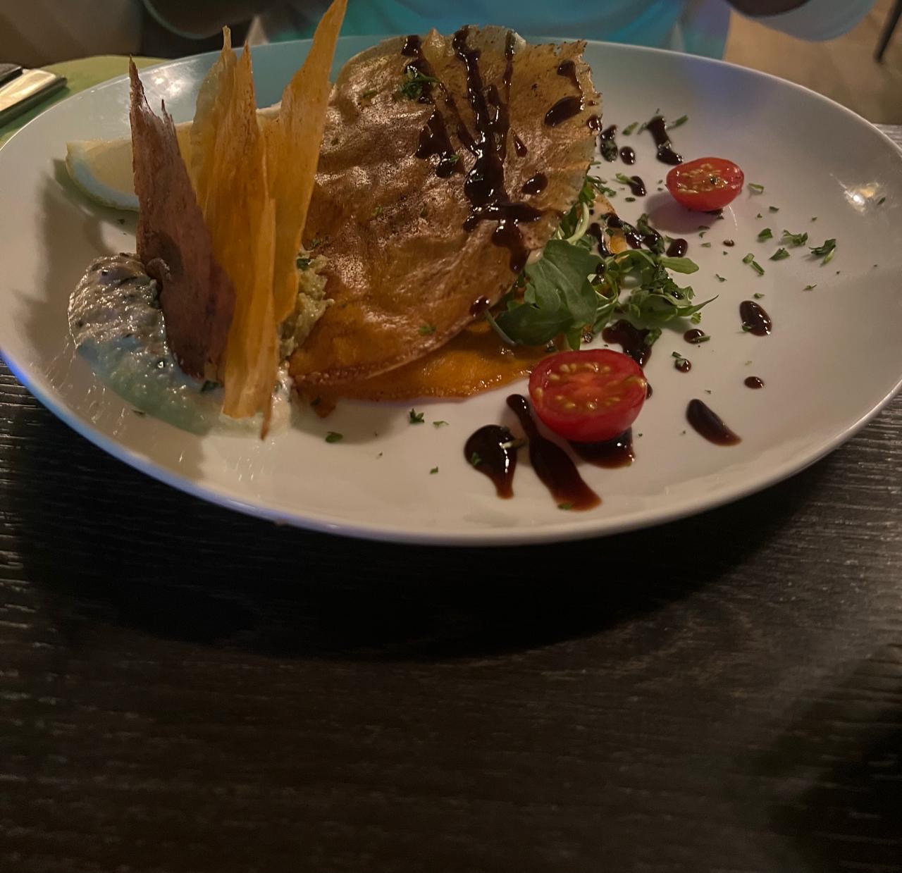 Entrée sympa. Plat moyen, patate douce mal cuite très farineuse. Dessert réellement limite mangeable, un espèce de machin industriel bas de gamme mais absolument pas fait maison. Pas terrible malgré un service agréable. Rapport qualité-prix bien médiocre....