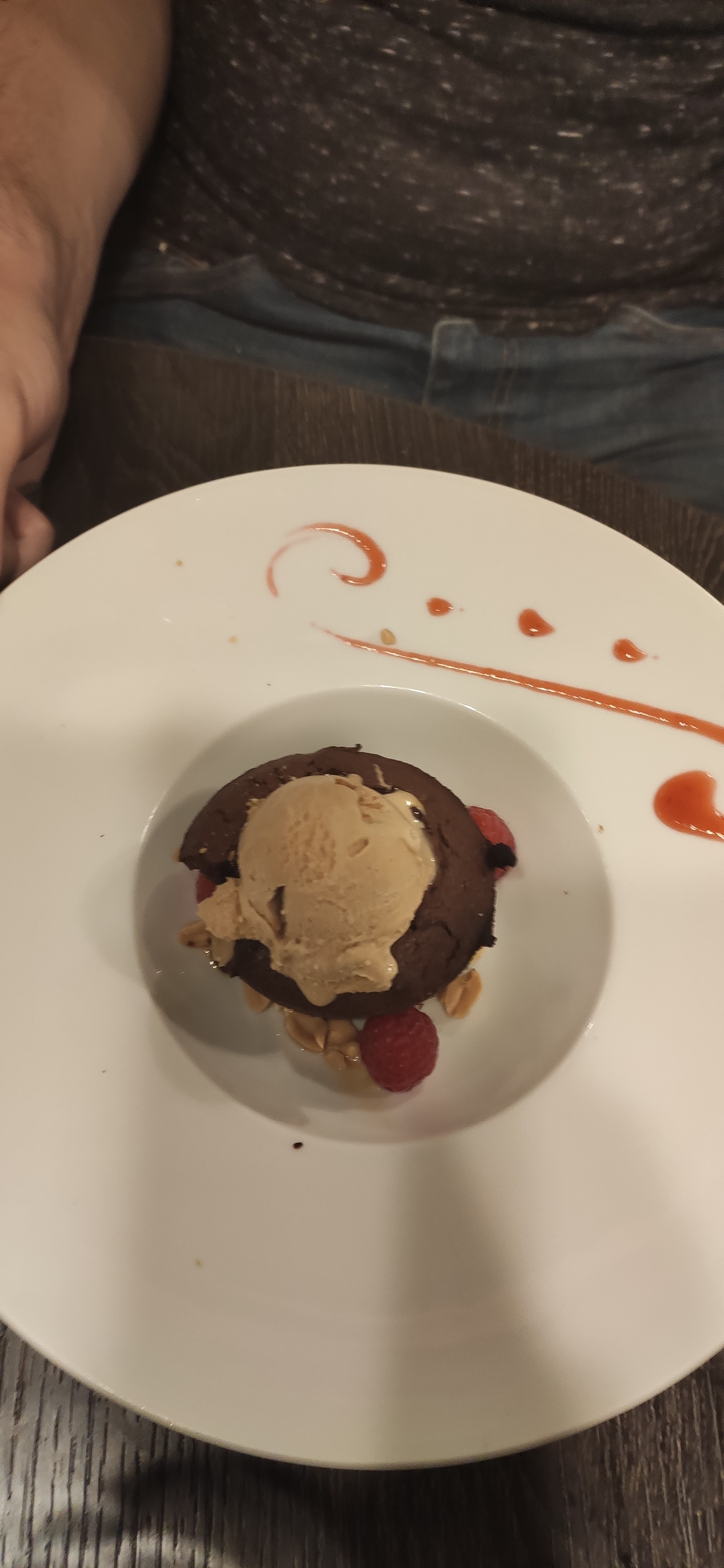 Personnel agréable, super accueil le seule point négatif plat trop long à arriver pas très chaud ,les desserts à revoir pas bon du tout, j'y retournerai mais seulement pour y boire un verre