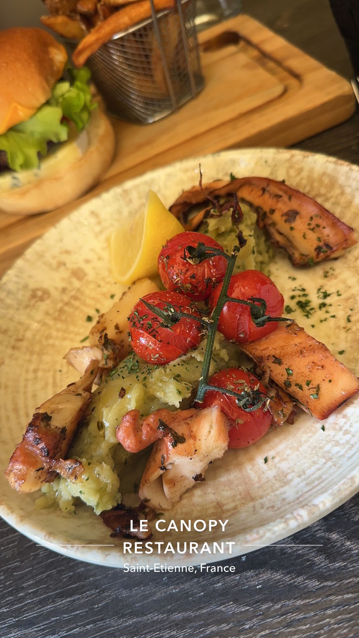 Découvert par hasard en cherchant un restaurant ouvert au mois d'août à Saint Étienne, nous voici parti à Le Canopy! Cadre chic et décontracté, nous sommes très bien accueilli et on nous laisse choisir notre table. Musique d'ambiance très agréable, bien assis, on nous apporte les cartes. Un très joli choix de cocktails pour les amateurs, une carte des vins très sympa et pour les menus, un choix restreint mais largement suffisant quand on voit que tout est fait maison ! De l'entrée au dessert, tout était très bien. Des saveurs justes, des cuissons réussi et un service efficace et discret. Pour ce qui est de la note, plutôt très correcte, 82€ boissons comprises pour 2 ! Adresse que nous retenons et nous reviendrons avec plaisir !
