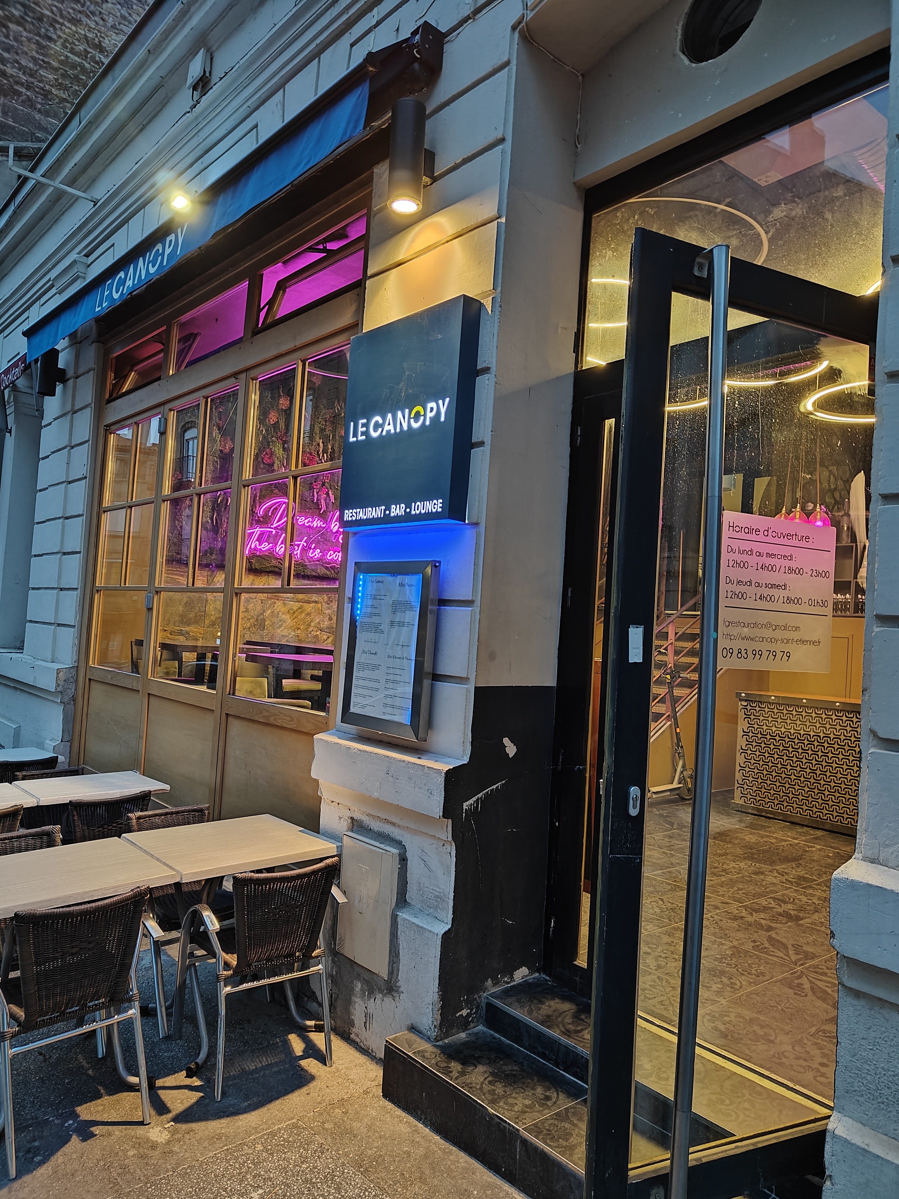 Un très bon moment passé au Canopy notamment grâce aux attentions et à la gentillesse du serveur. Merci à lui ainsi qu'à toute l'équipe. La nourriture était plutôt bonne. Je note les frites succulentes. Le décor était moderne et la rue est peu passante ce qui est agréable en terrasse. Néanmoins j'enlève une étoile car les cuissons des viandes n'étaient pas respectées. J'avais demandé bleu j ai eu bien cuit et mon copain pareil. Étant une grande amatrice de viande cet écart m'a déçu. Mais globalement un très bonne adresse avec une carte complète aux prix raisonnables. Merci.
