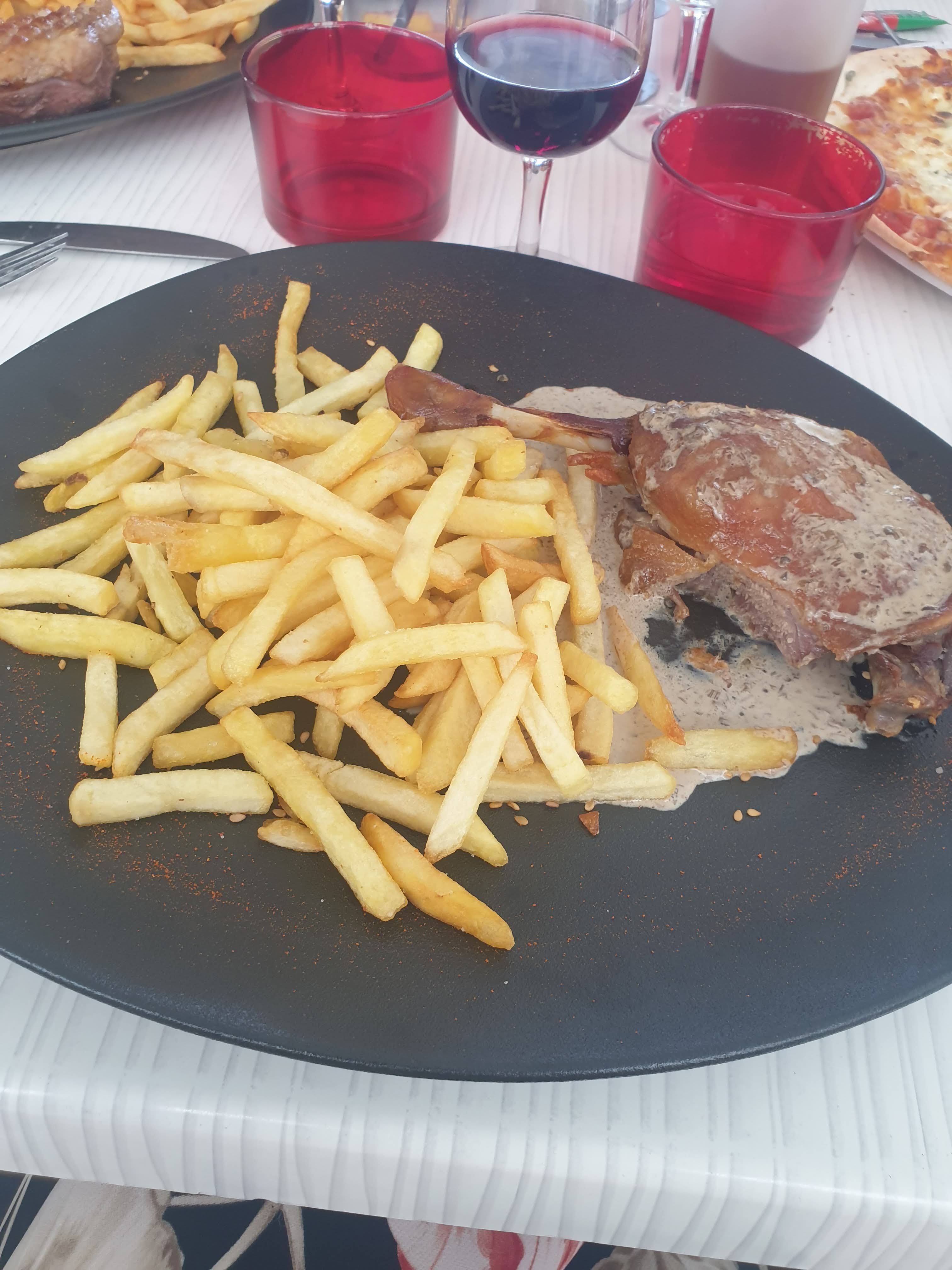 C'est bien d'avoir 50 plats mais si c'est pour ouvrir des boîtes... Si je dois deviner pour l'entrée de tapas du menu à 19 je dirais tortilla sous vide, chorizo prétranché du supermarché, anchois marinés de supermarché moules à la catalane en conserve (type apéro) et je passe sur les panures car c'est pas bien de tirer sur l'ambulance... Je préfèrerais une 20aine à tout cassé fait maison que ça... Par contre le service était bien rien à dire dessus. L'ambiance musicale moyenne : quelques bons titres mais Je roule de Soprano et I Feel it coming de the weekend ça passe pas quand on est à table en vacances (l'une c'est sur la femme du personnage qui vient de mourir du cancer on a vu plus gai et l'autre raconte ses ébats sexuels ce qui est au mieux pas pertinent...)