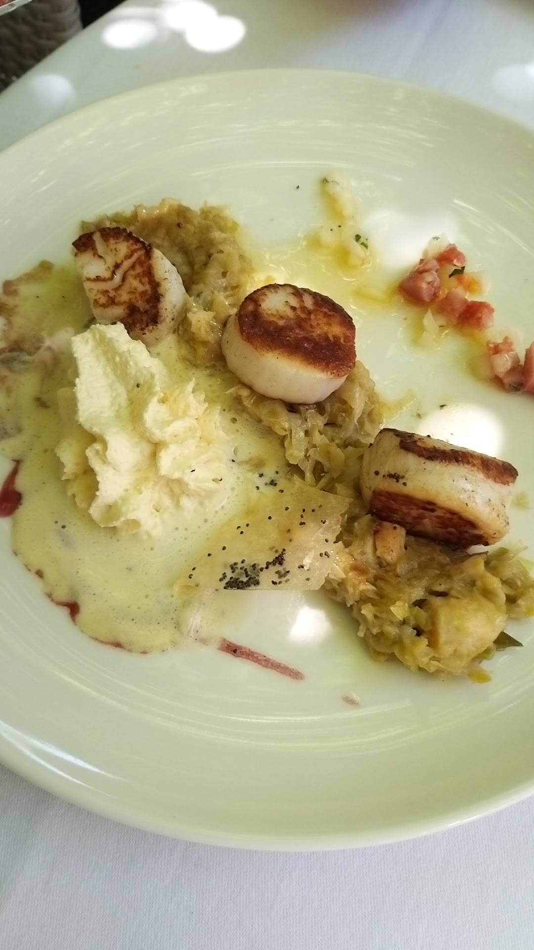 Très bonne table, rien à dire, de la mise en bouche au dessert... produits frais et de qualité, un régal! Le sommelier très agréable et de bons conseils. Une étoile en moins pour le bruit des avions qui est impressionnant la bas!
